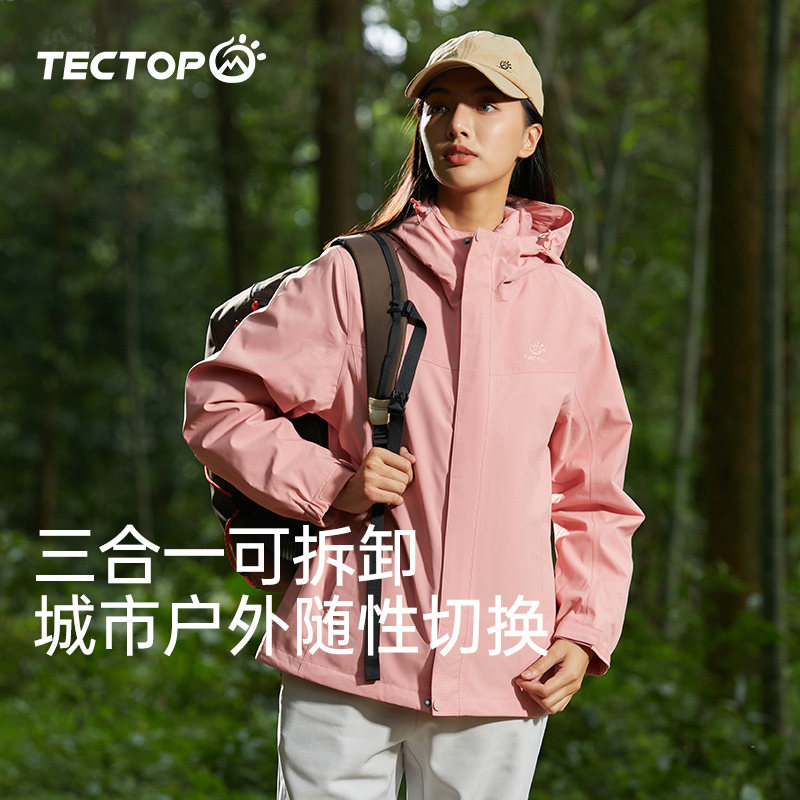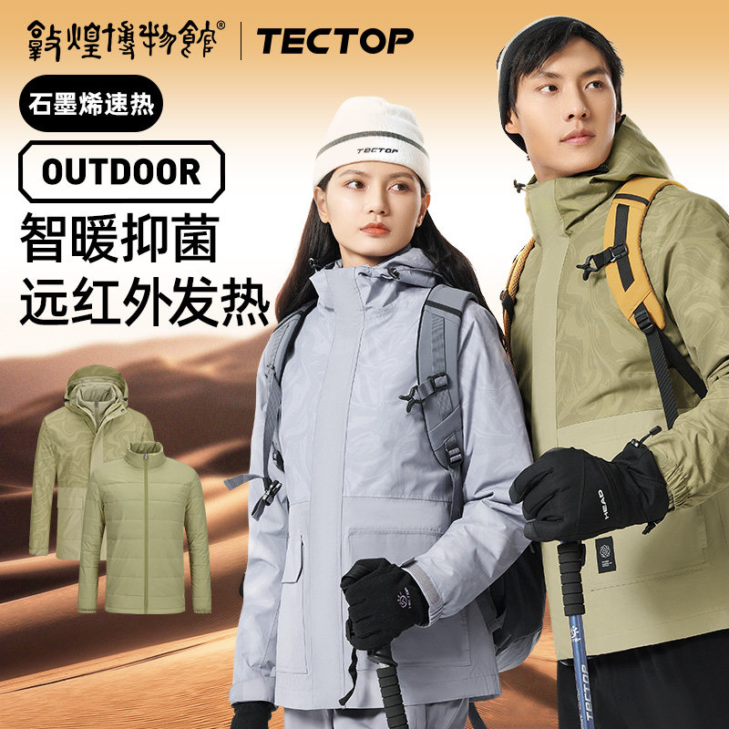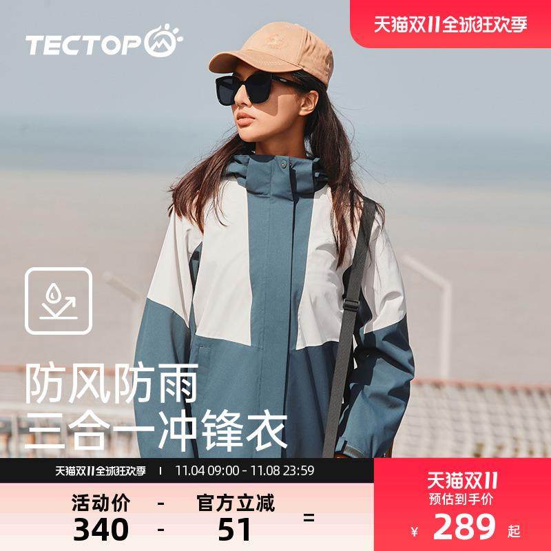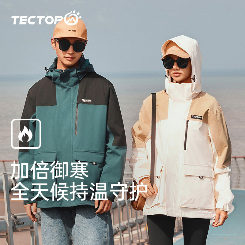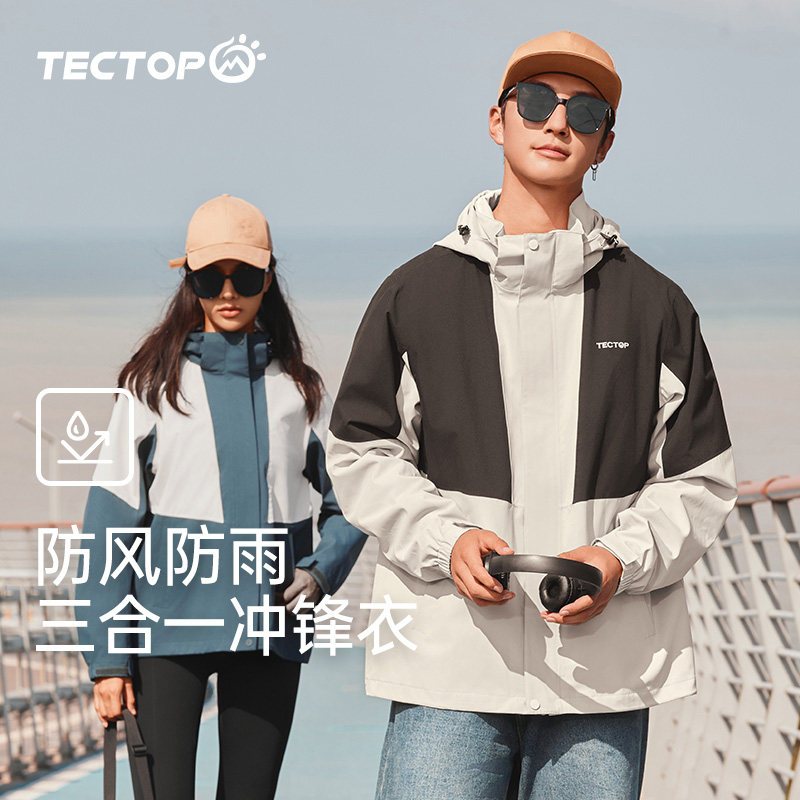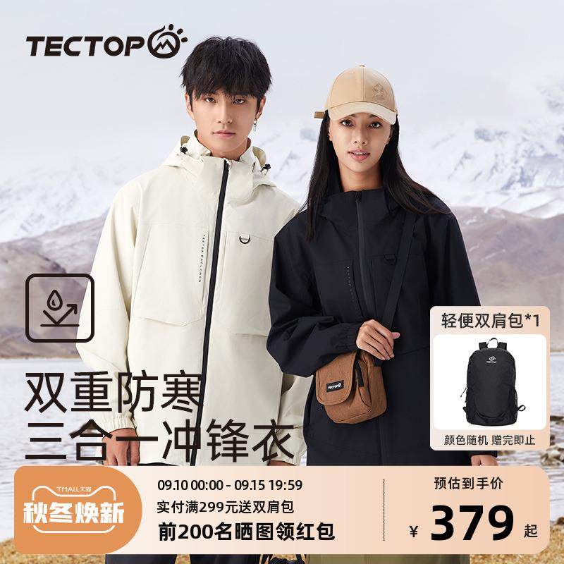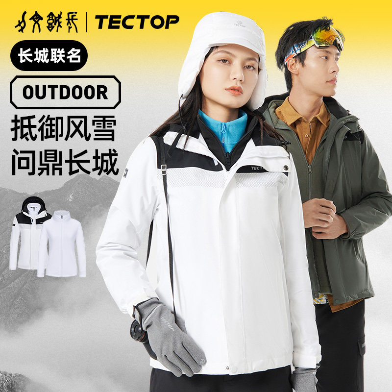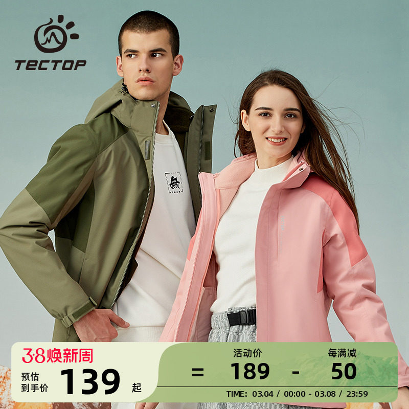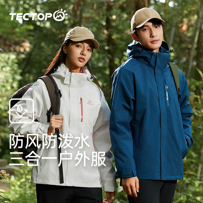 TECTOP探拓新款户外冬季情侣保暖两件套冲锋衣男女通款三合一外套