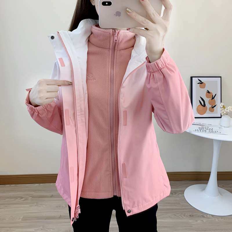 探拓户外摇粒绒冲锋衣女式可拆卸三合一秋冬外套防风防雨登山服