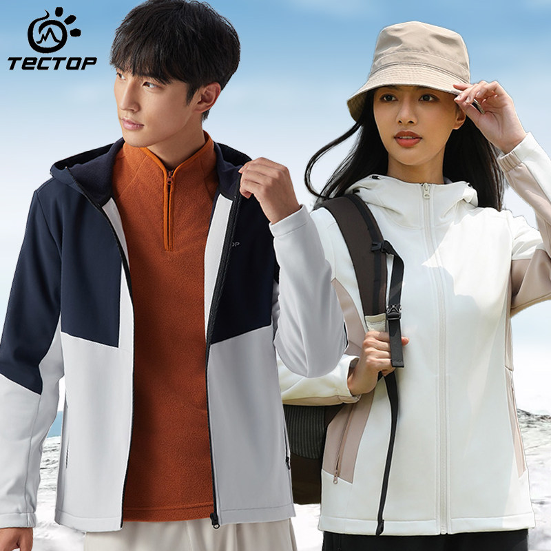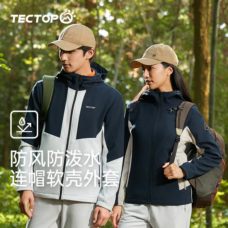 探拓户外软壳衣男女秋冬季防风防雨加抓绒冲锋衣连帽开衫风衣外套
