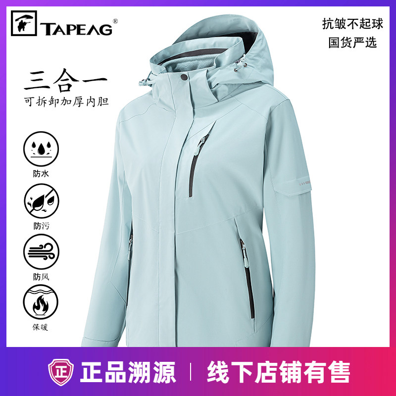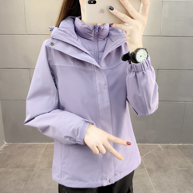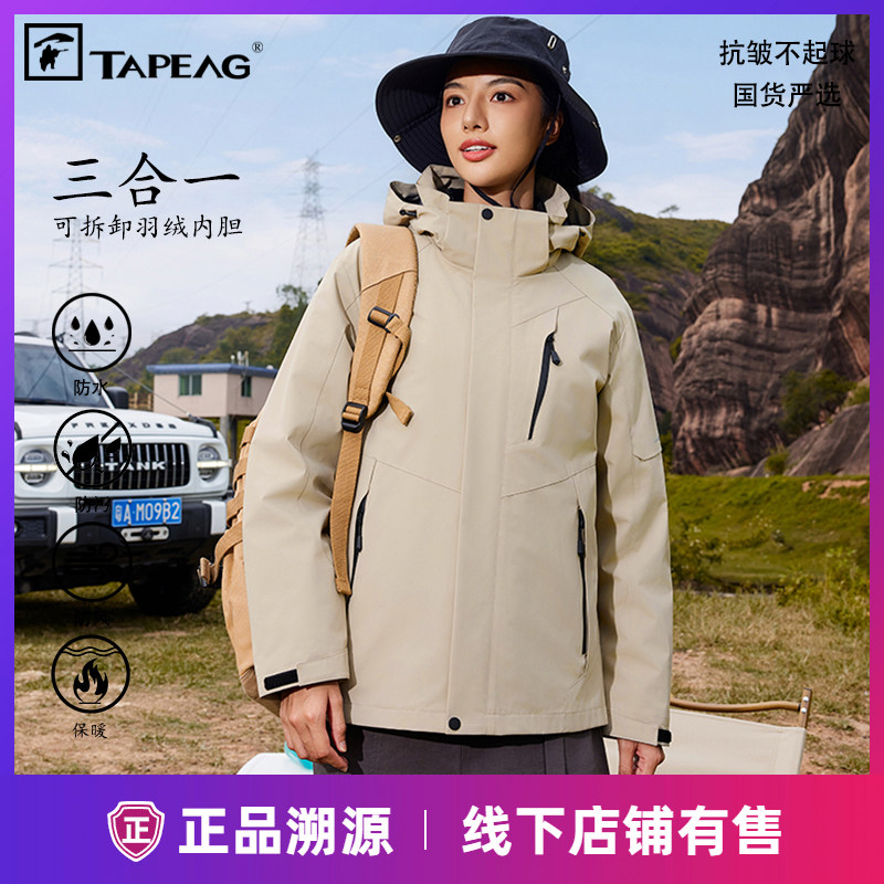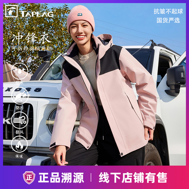 探拓户外秋冬季女士款保暖防风两件套可拆卸羽绒内胆三合一冲锋衣