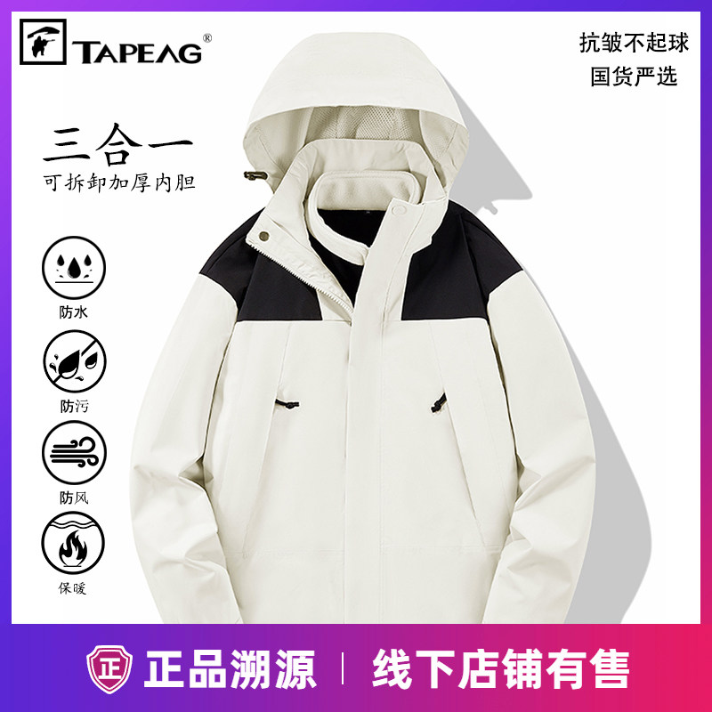 探拓户外冲锋衣男款三合一防水防风抓绒拼色外套秋冬可拆卸登山服