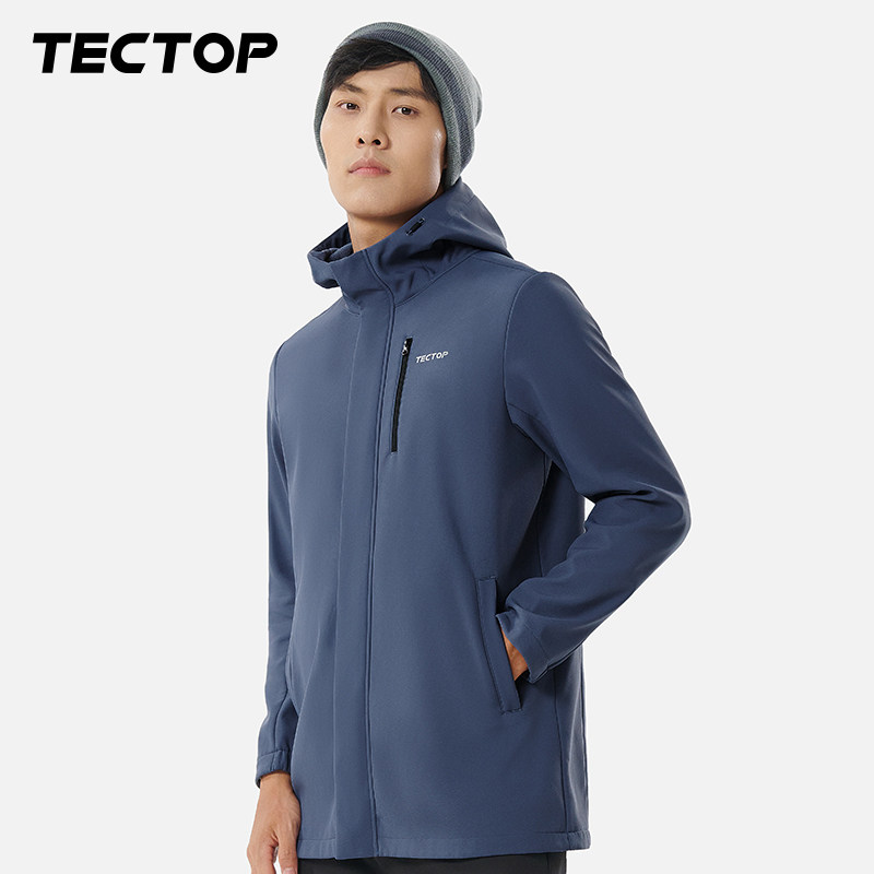 探拓户外运动软壳衣男士秋冬防风防水加绒冲锋衣连帽保暖登山外套