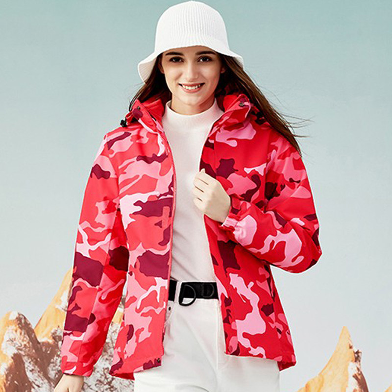 2024探拓秋冬迷彩防风防水女冲锋衣三合一两件套可拆卸保暖登山服