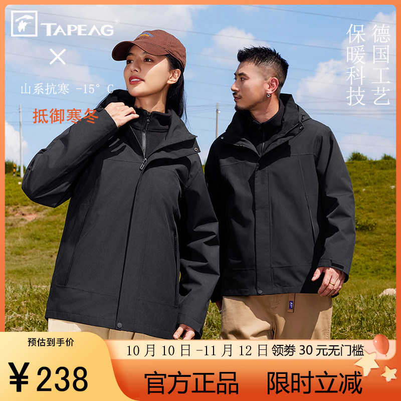 探拓户外冬季两件套三合一冲锋衣男女式情侣抓绒内胆防风旅行保暖