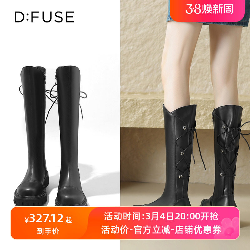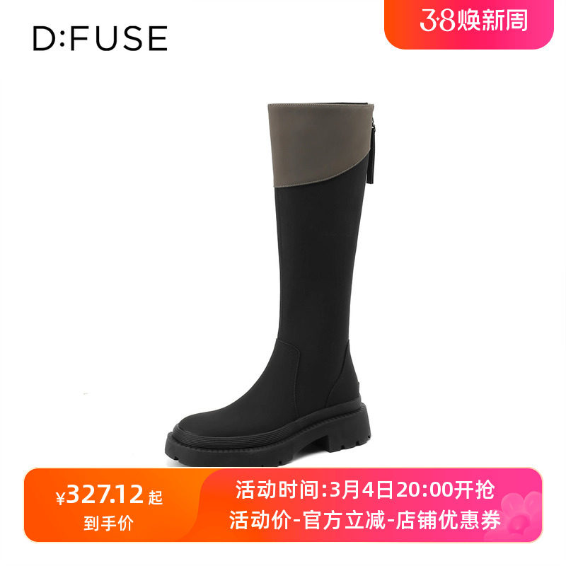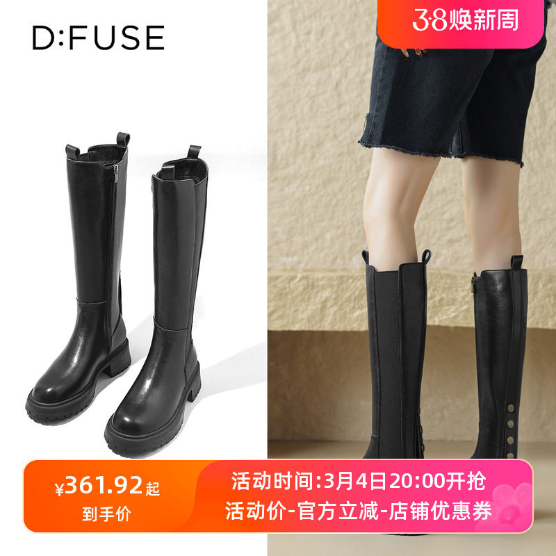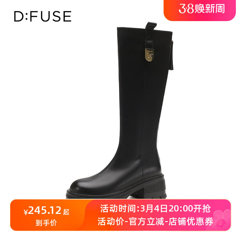 D:Fuse/迪芙斯冬季厚底骑士靴保暖加绒侧拉链长靴女DF3311907A