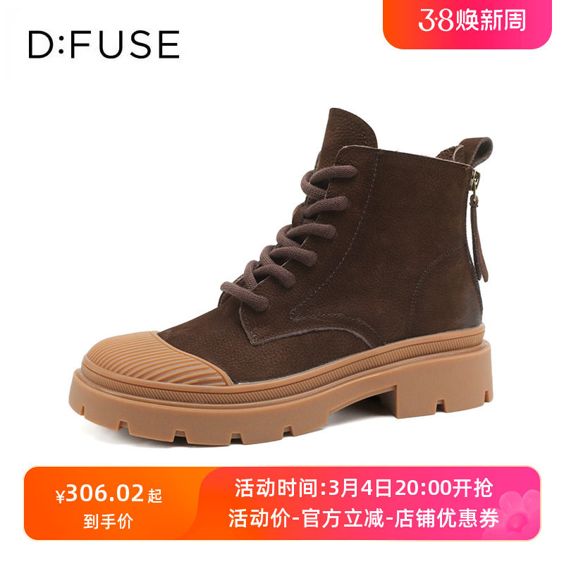 D:Fuse/迪芙斯春秋圆头牛皮系带后拉链粗跟时装马丁靴DF3311820F