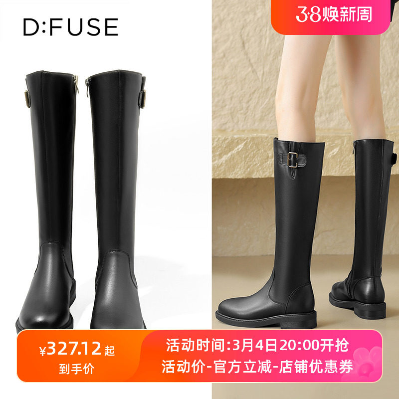 D:Fuse/迪芙斯冬季骑士靴保暖加绒厚底侧拉链长靴女DF3311908A