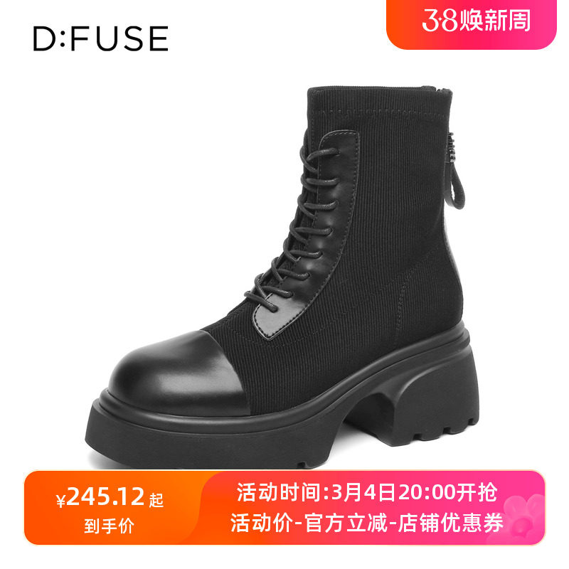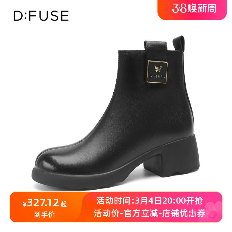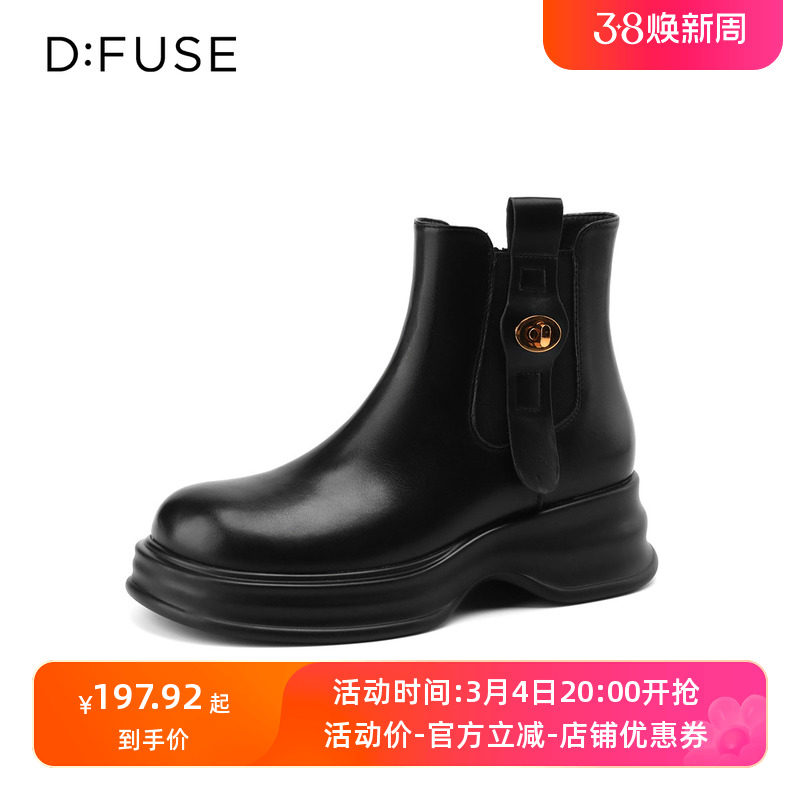 D:Fuse/迪芙斯冬季新款厚底切尔西靴侧拉链圆头短靴女DF3411637F
