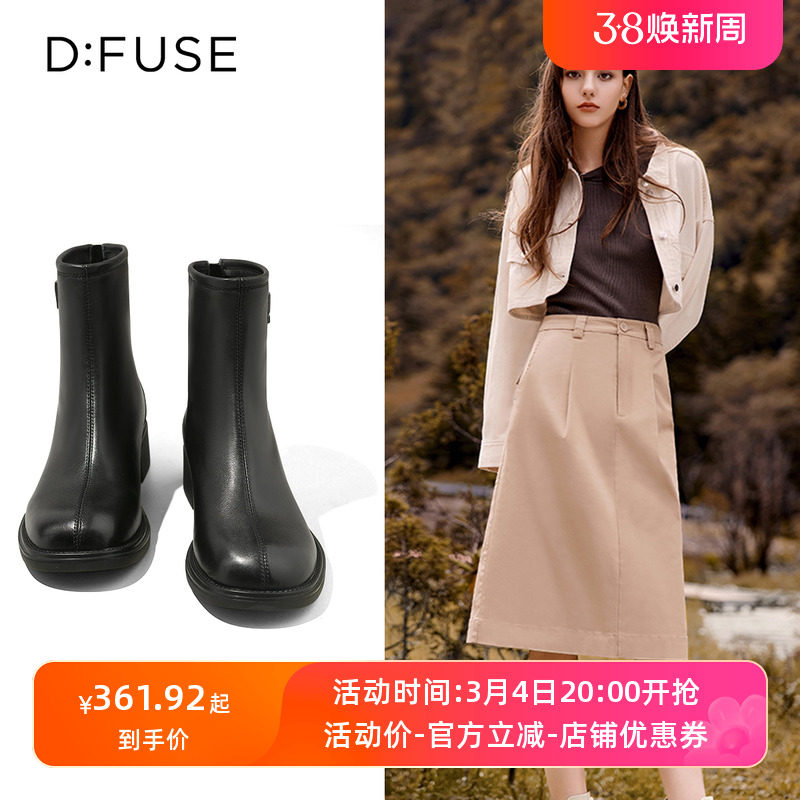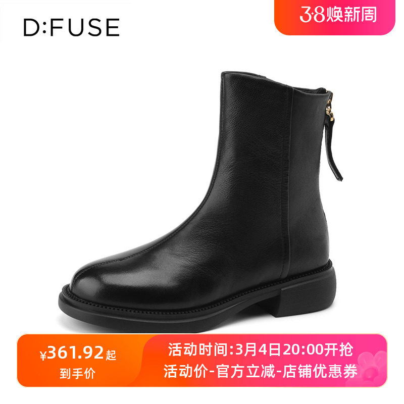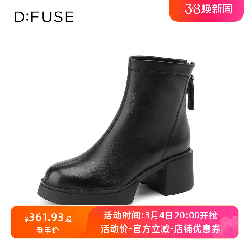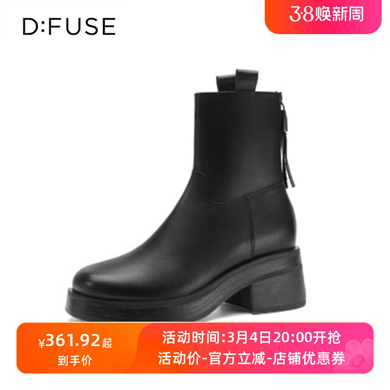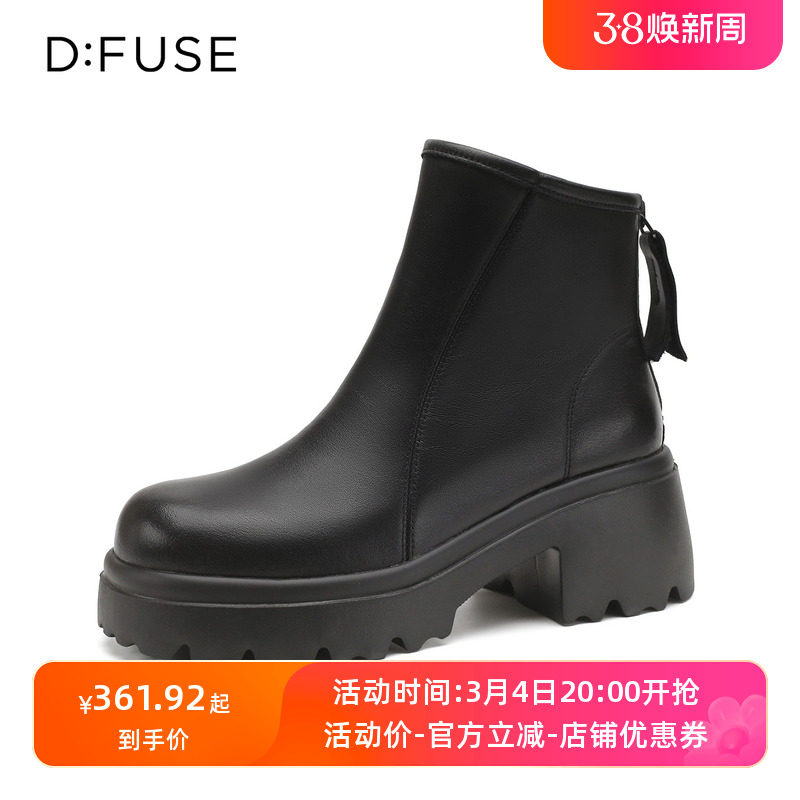D:Fuse/迪芙斯冬季新款牛皮圆头后拉链厚底时装短靴女DF3311661E