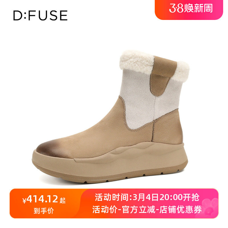 D:Fuse/迪芙斯冬季羊皮厚底后拉链加绒保暖时装短靴女DF3411612F