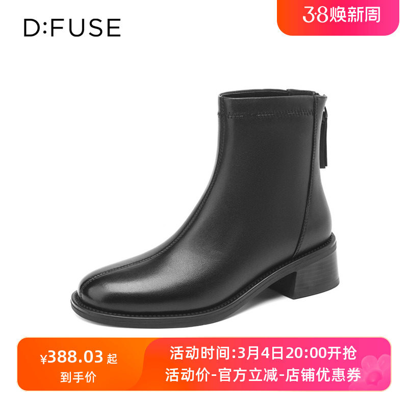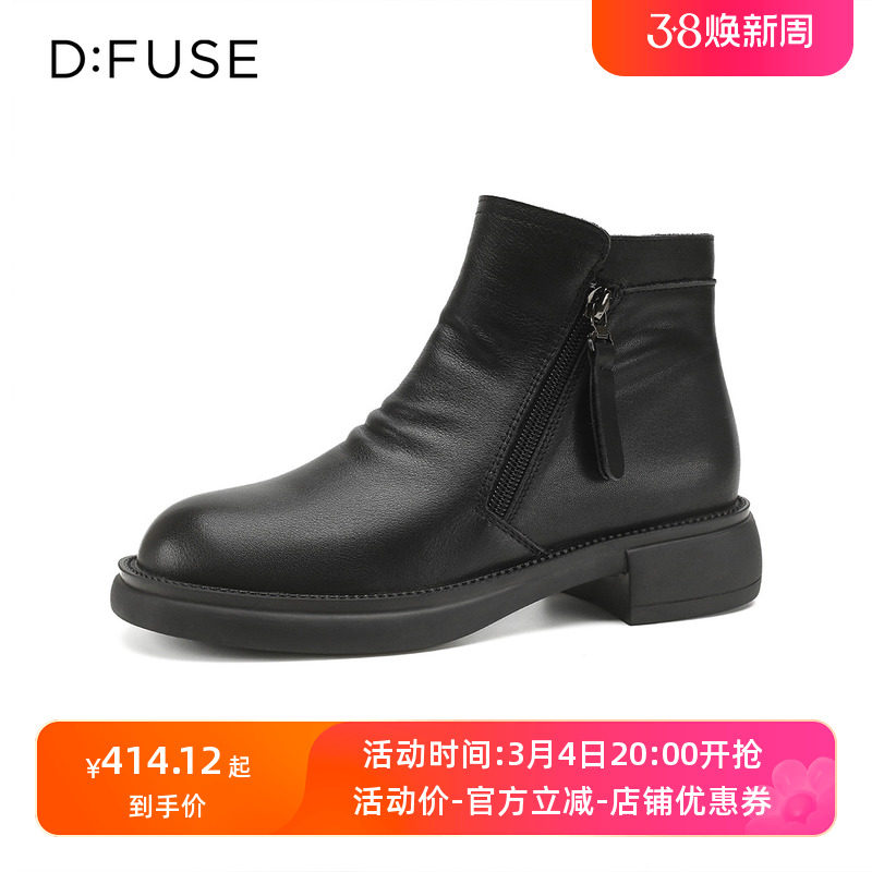 D:Fuse/迪芙斯冬季新款厚底圆头后拉链加绒保暖短靴女DF3411810C