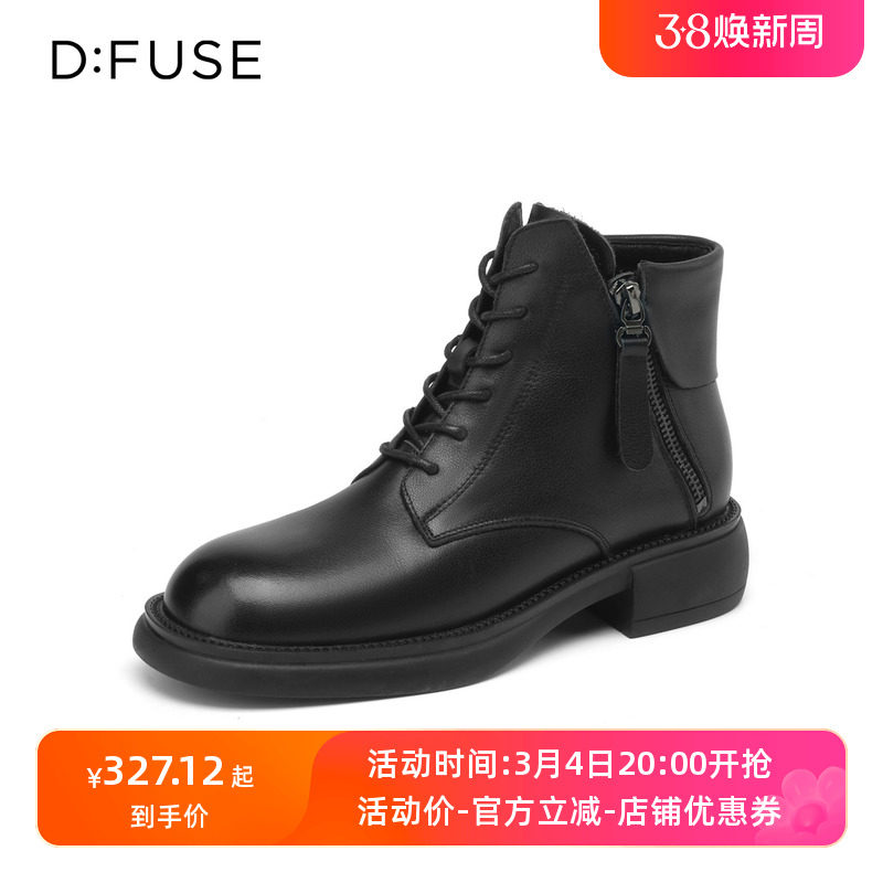 D:Fuse/迪芙斯秋冬圆头牛皮系带拉链保暖绒里马丁靴女DF3311875F