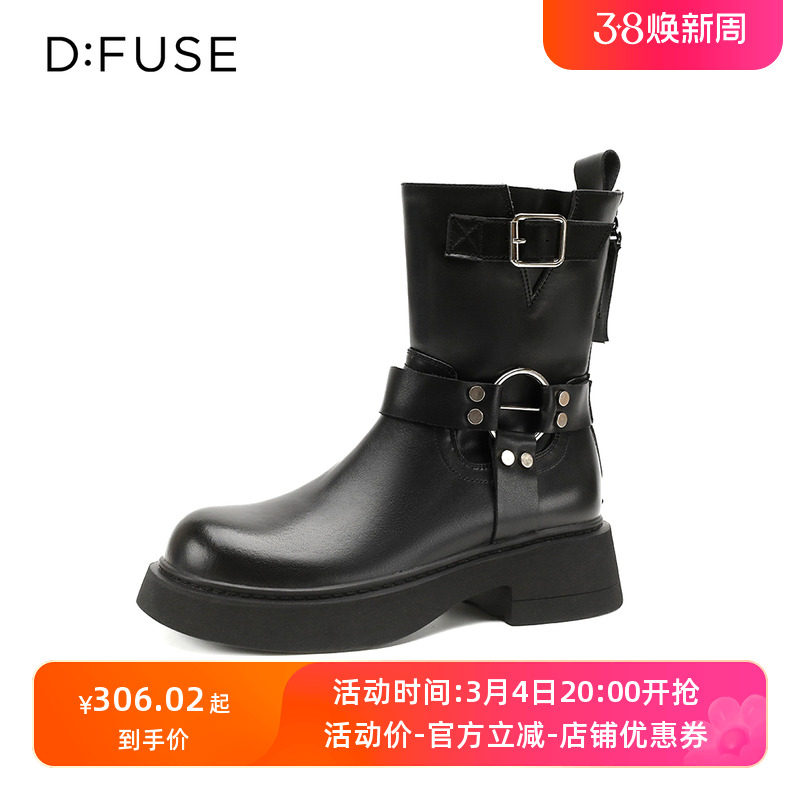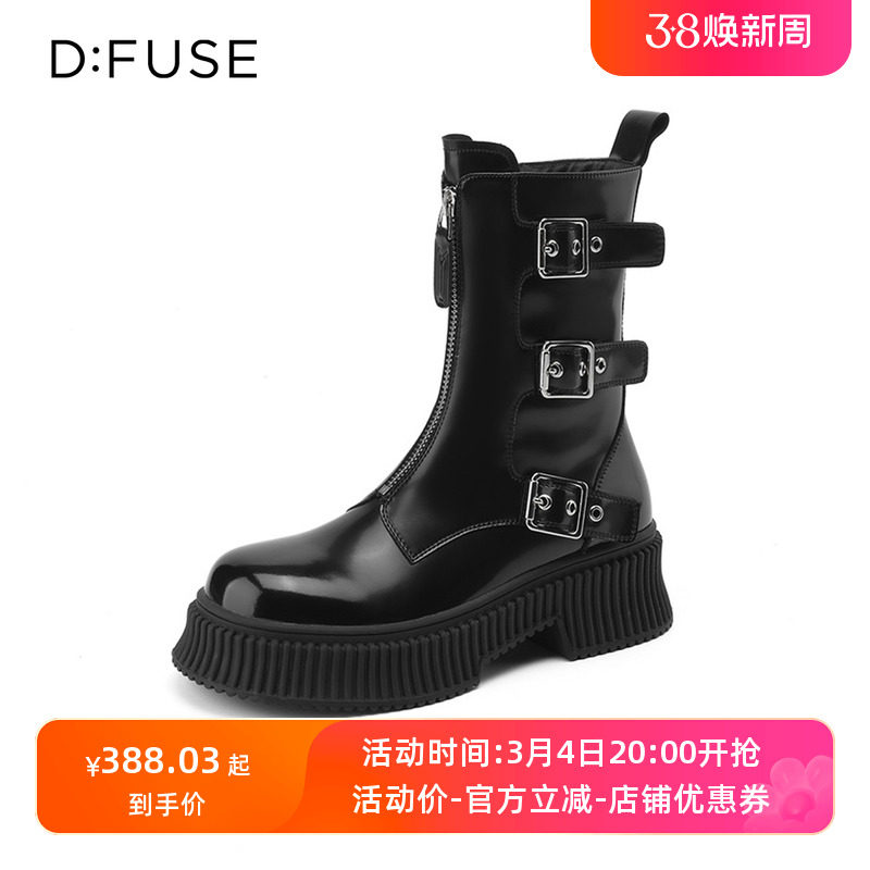 D:Fuse/迪芙斯冬季牛皮厚底马丁靴侧拉链户外短靴女DF3411632F