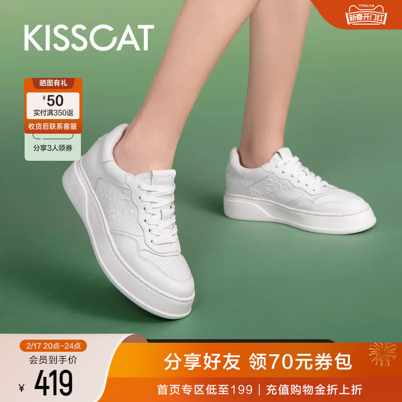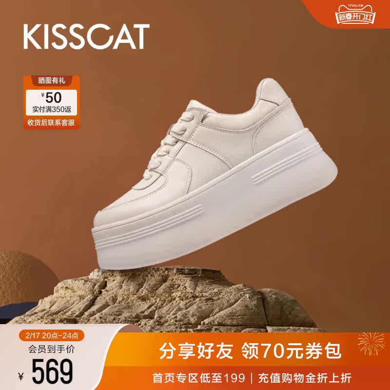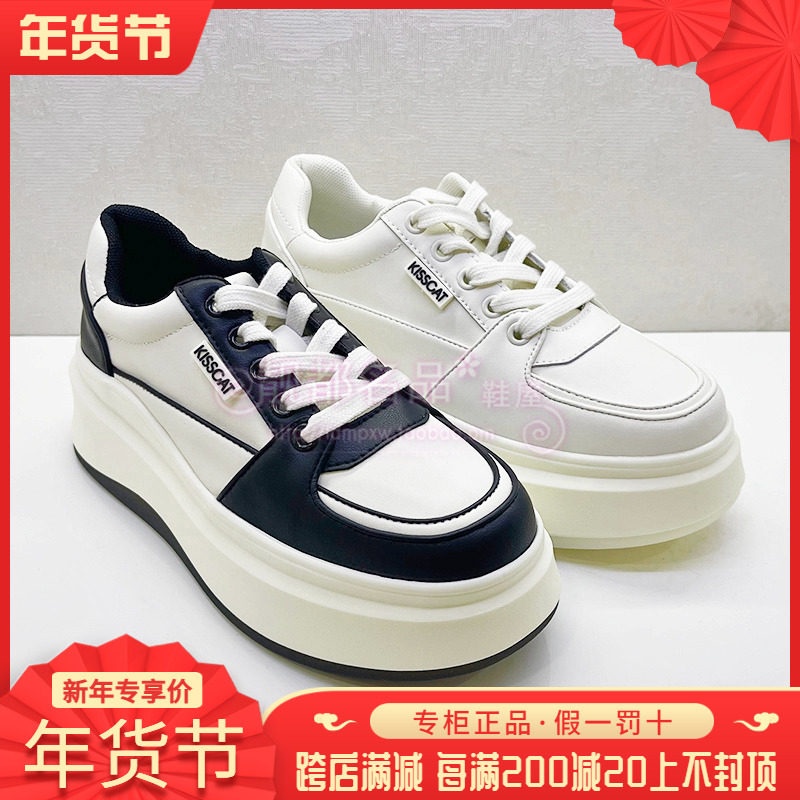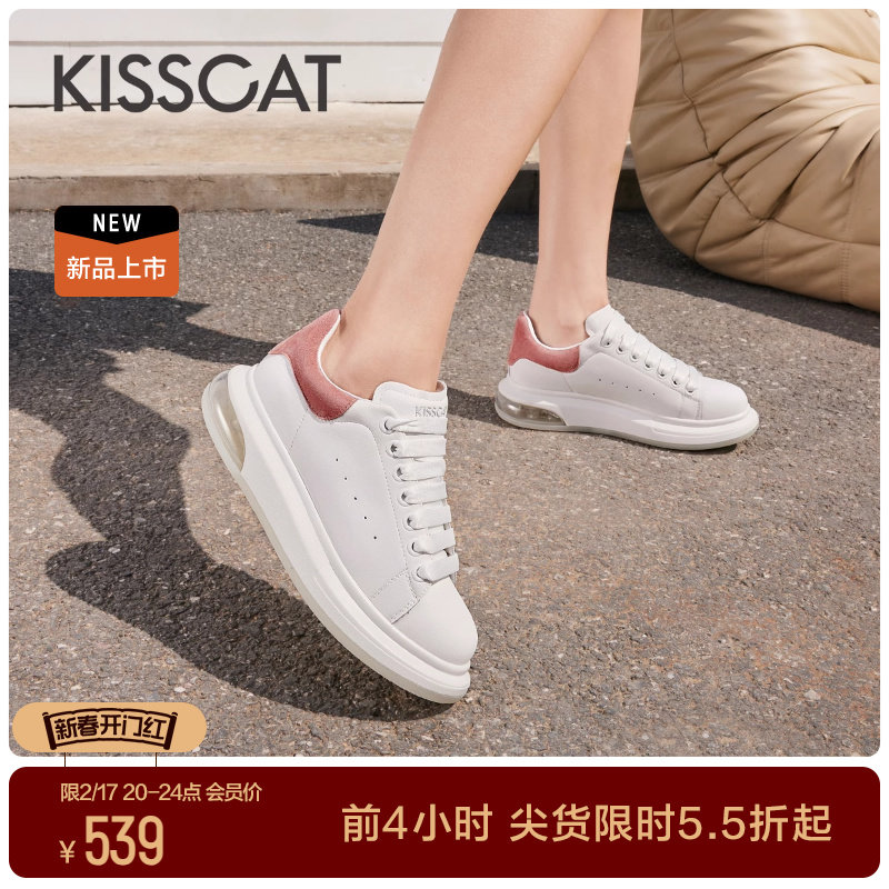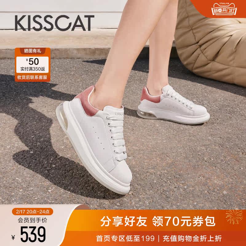 KISSCAT接吻猫2024春新品厚底气垫小白鞋增高运动鞋静奢运动鞋女