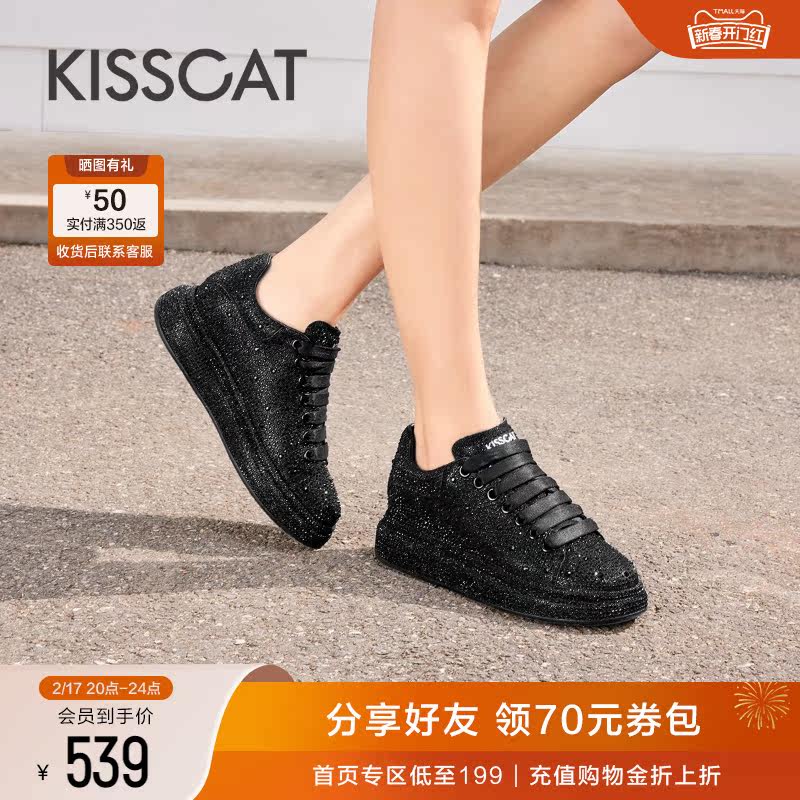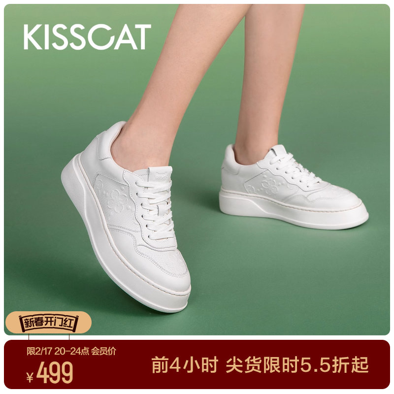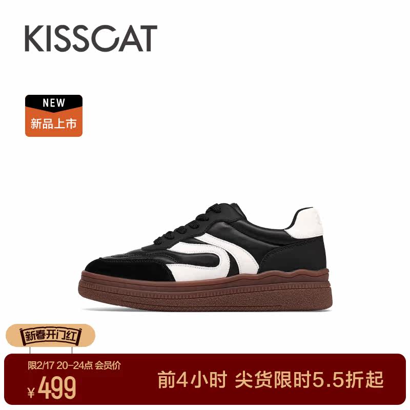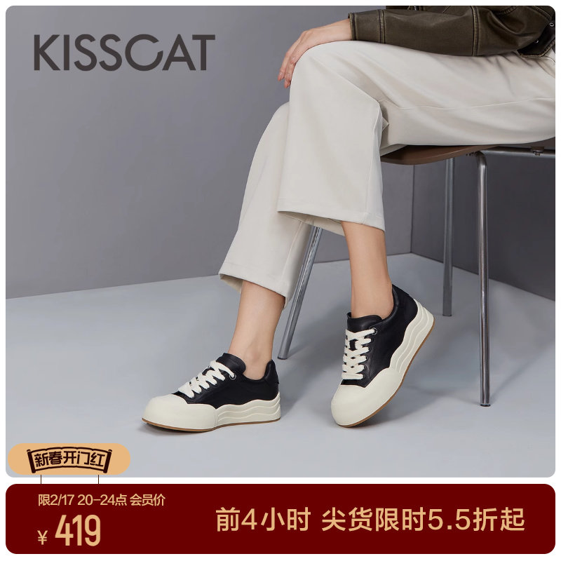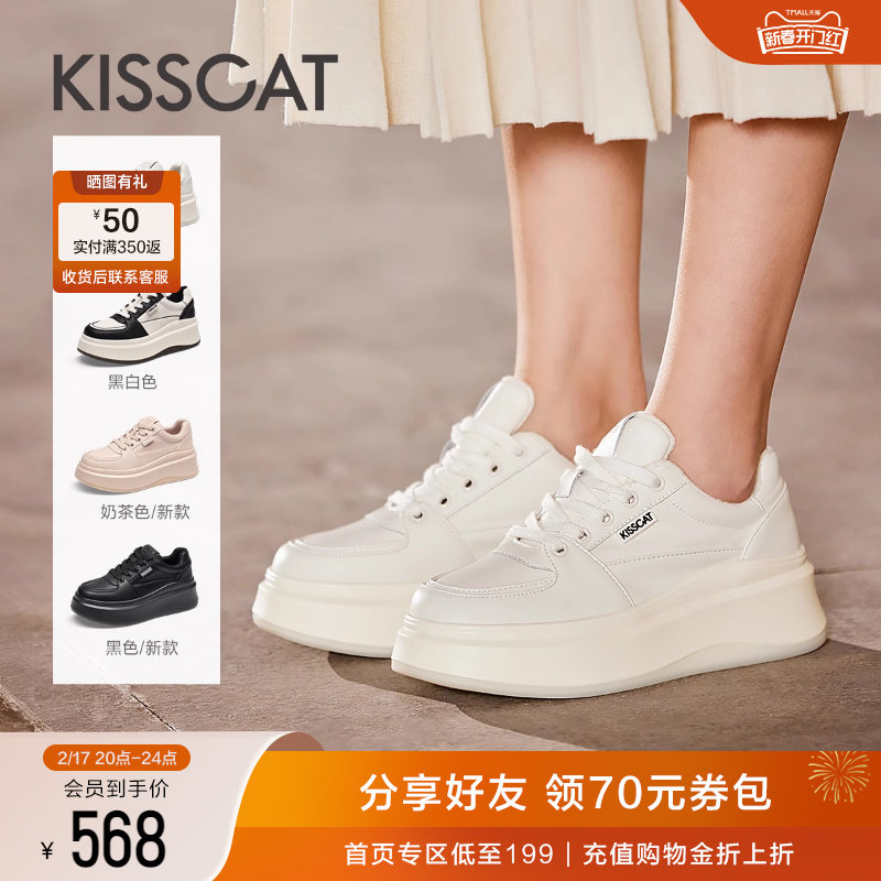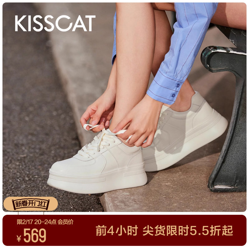 KISSCAT接吻猫春季新款简约时尚运动鞋气质厚底休闲板鞋女
