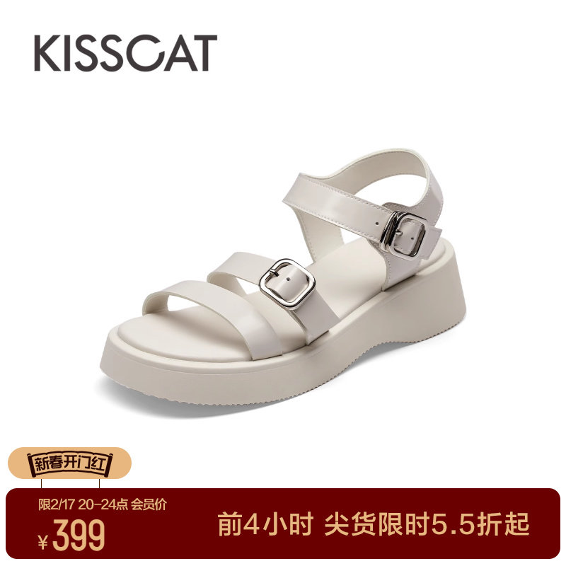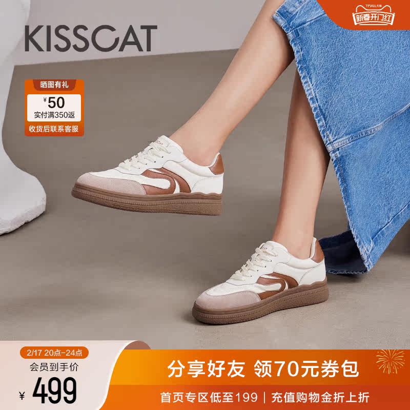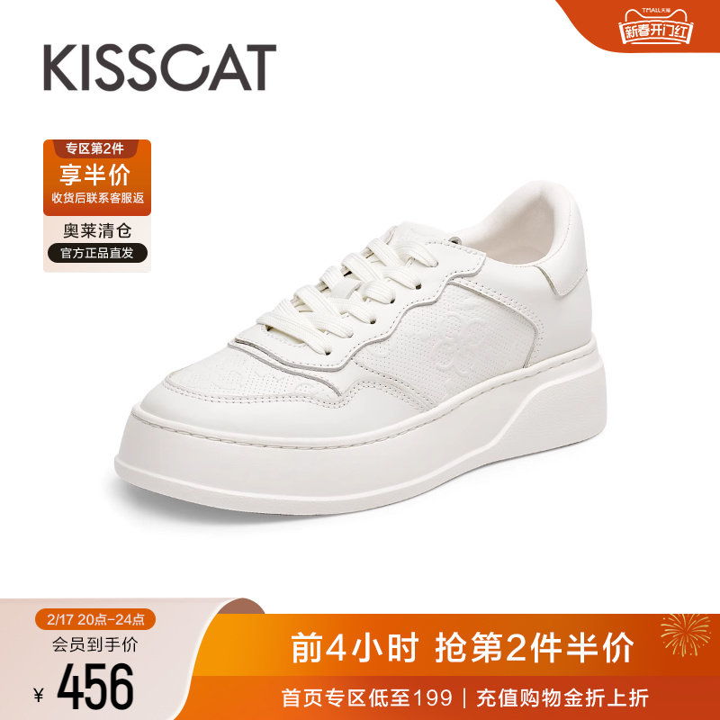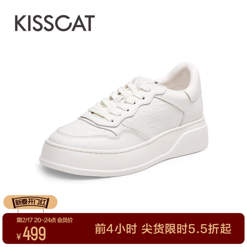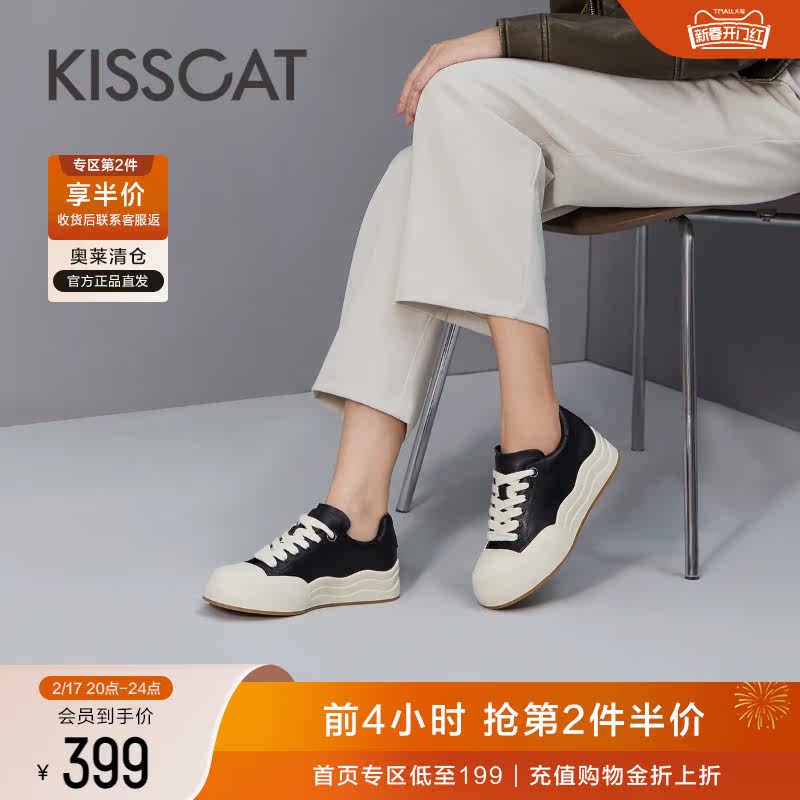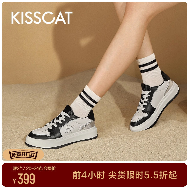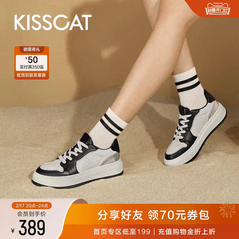 KISSCAT接吻猫春季新款简约时尚运动鞋气质厚底休闲板鞋女