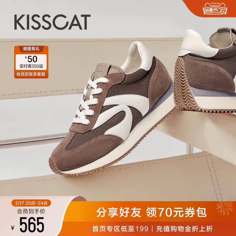 KISSCAT接吻猫24年春新品厚底德训鞋美式复古阿甘鞋轻便运动鞋女