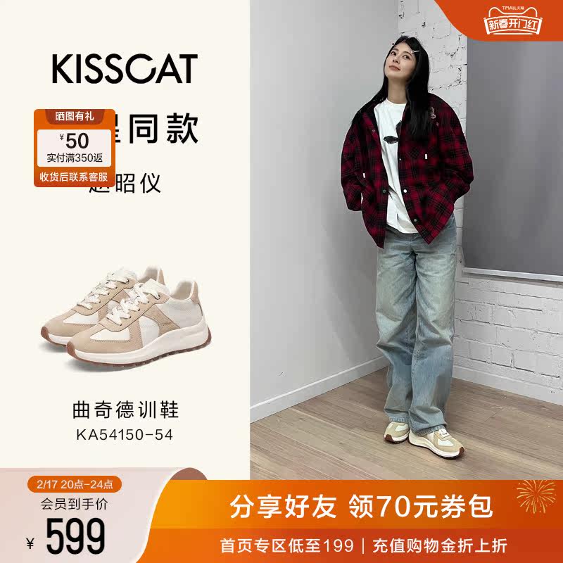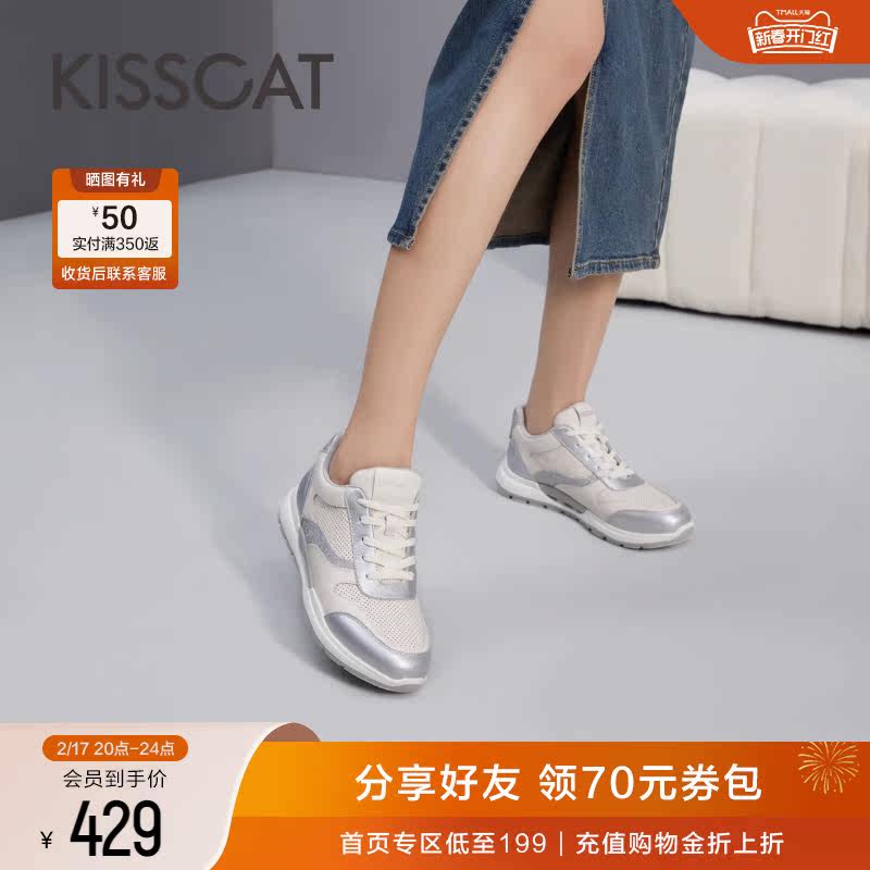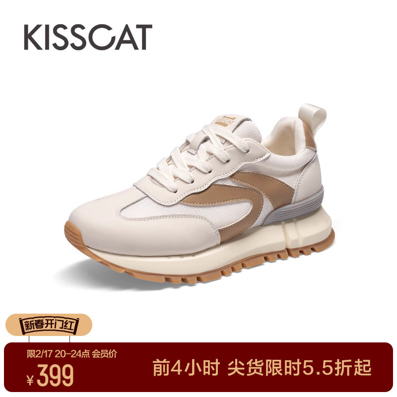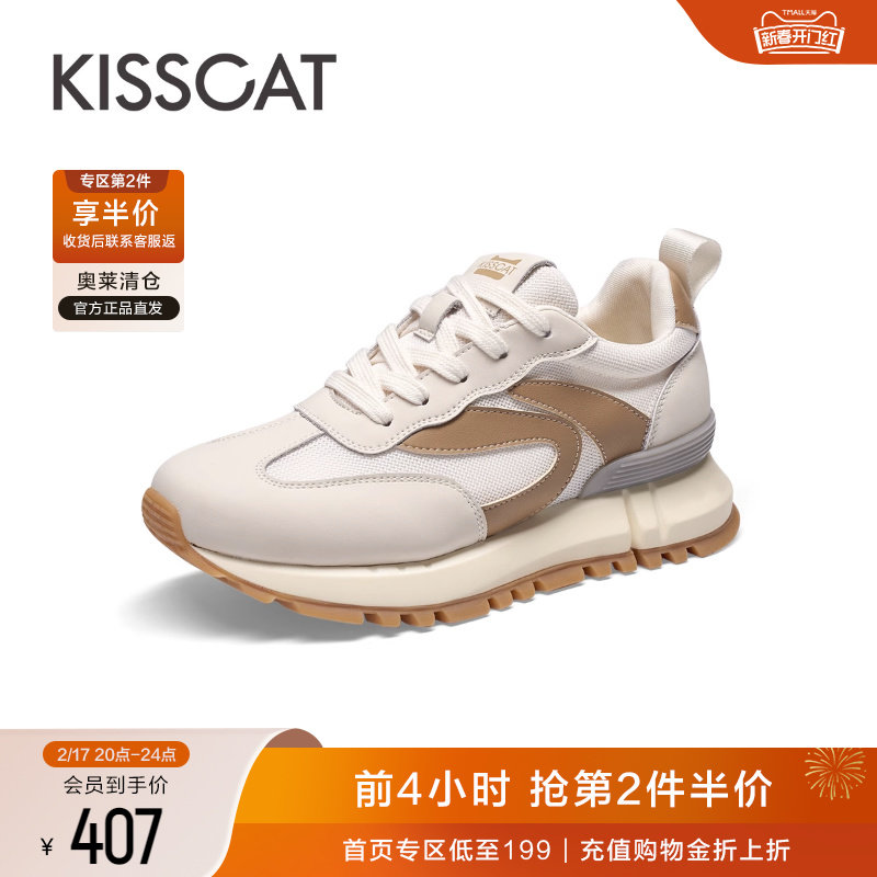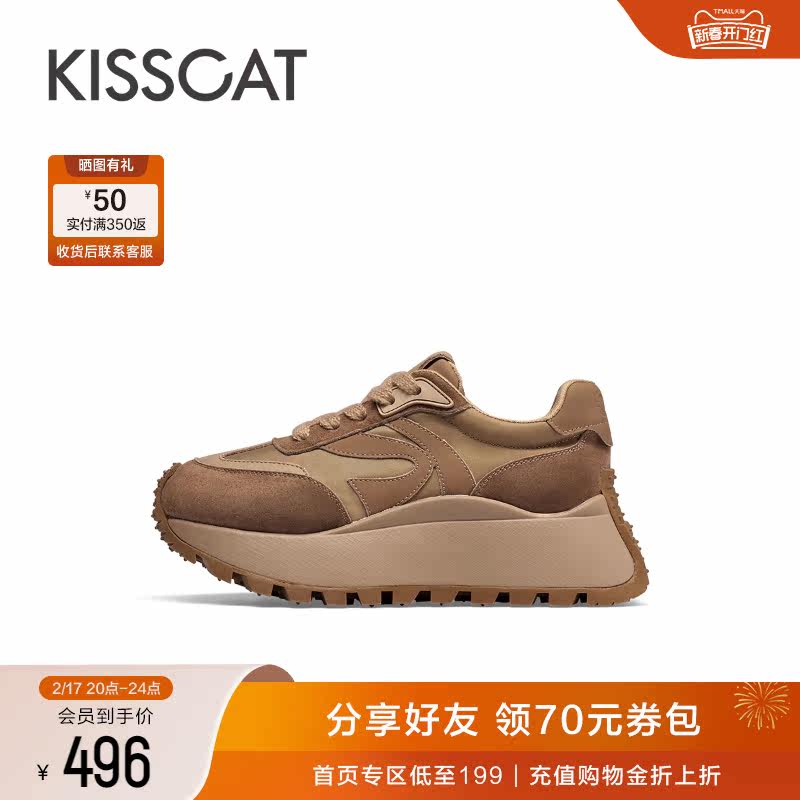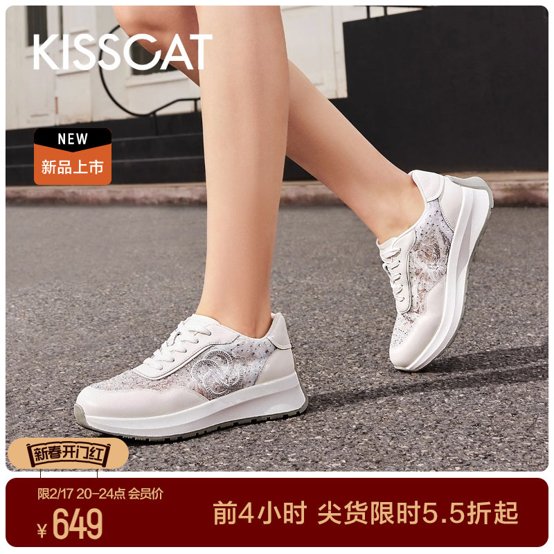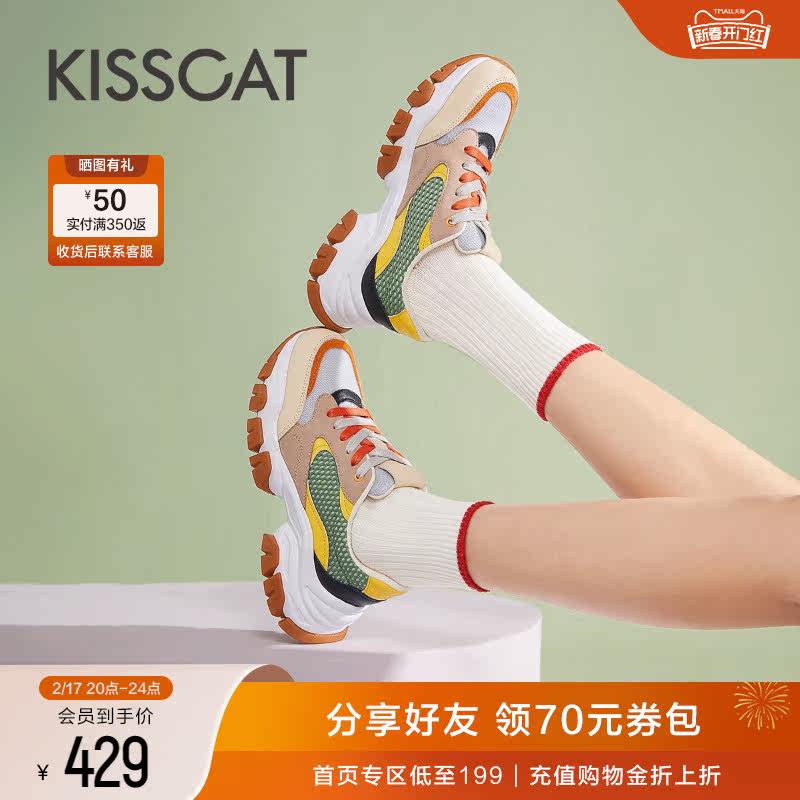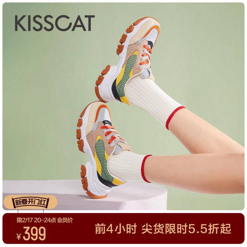 KISSCAT接吻猫春季新款拼接增高运动鞋气质时尚休闲鞋女