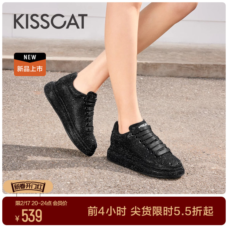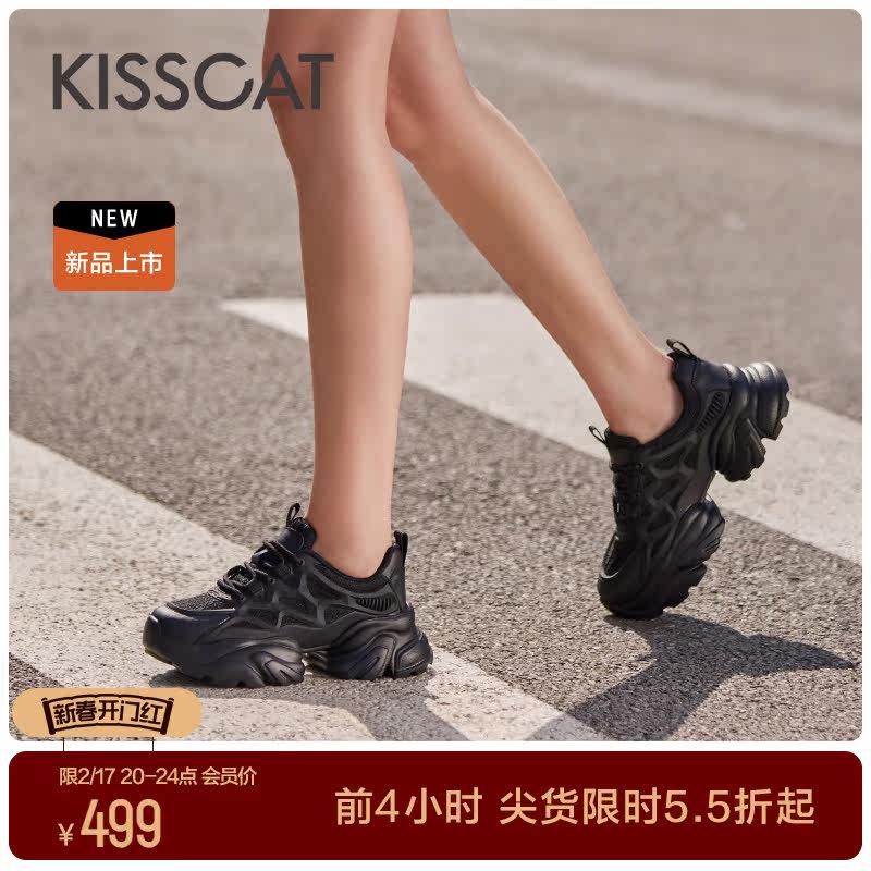 KISSCAT接吻猫2024春季新款防滑增高运动鞋厚底流行时尚休闲鞋女