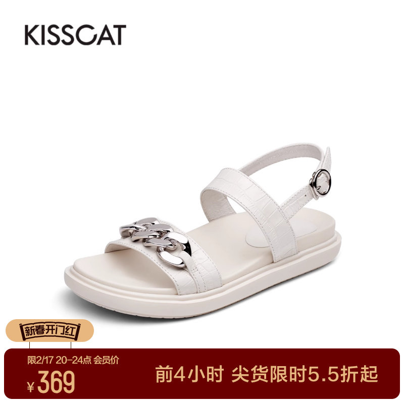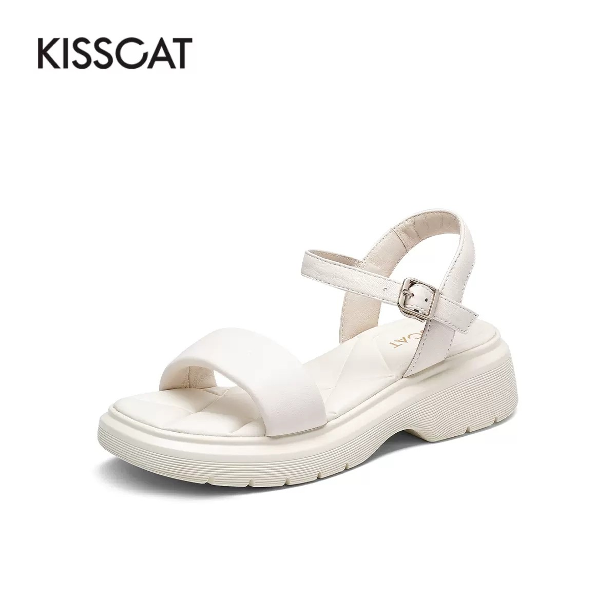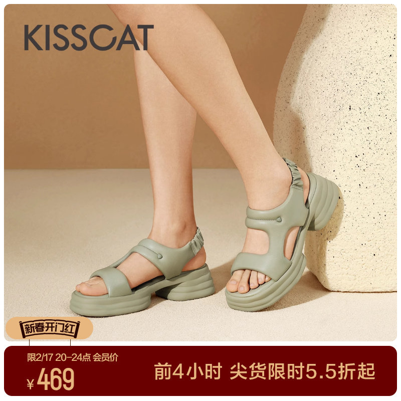 接吻猫[软枕系列]夏季新款厚底面包凉鞋舒适运动时尚沙滩鞋女