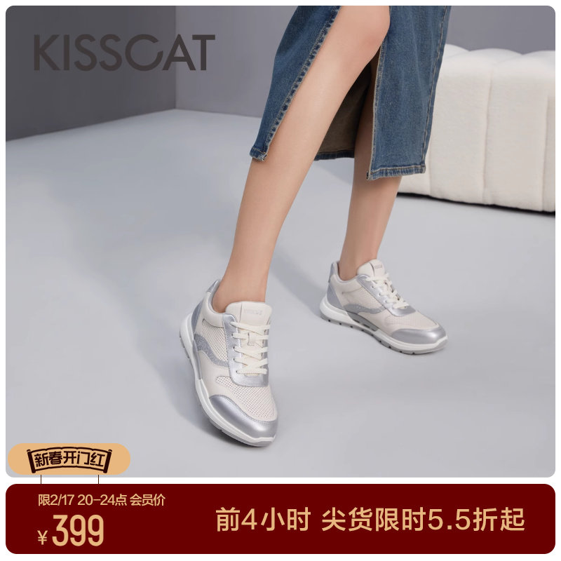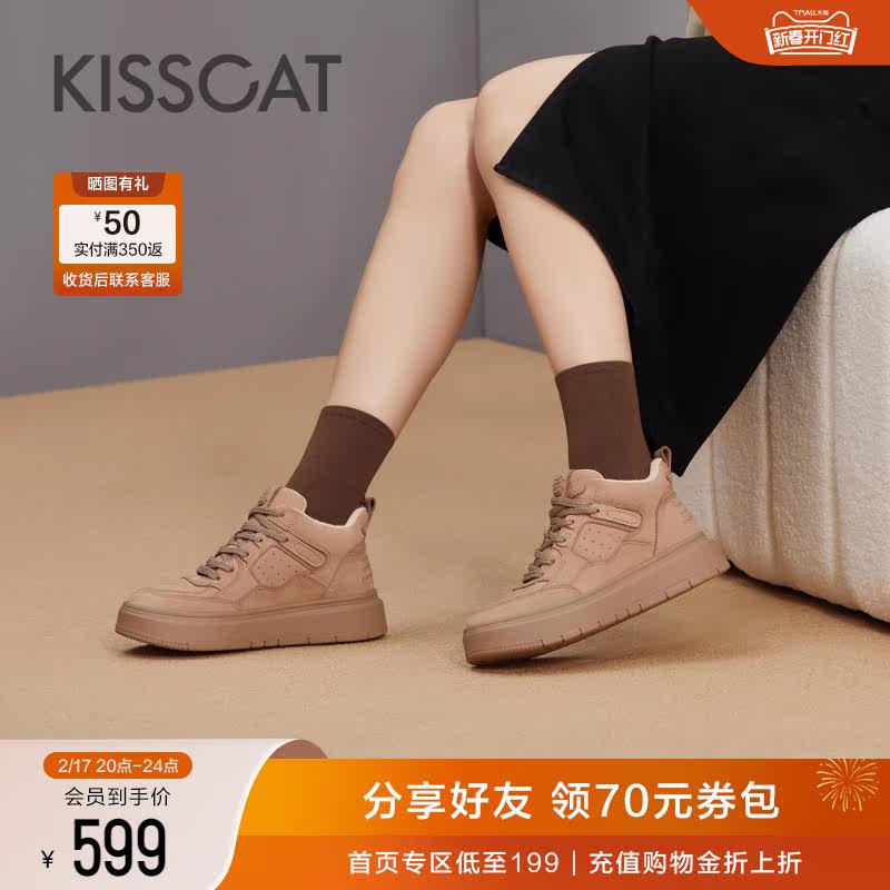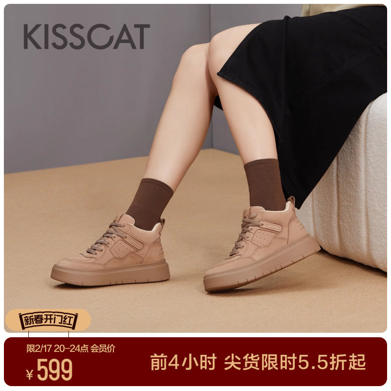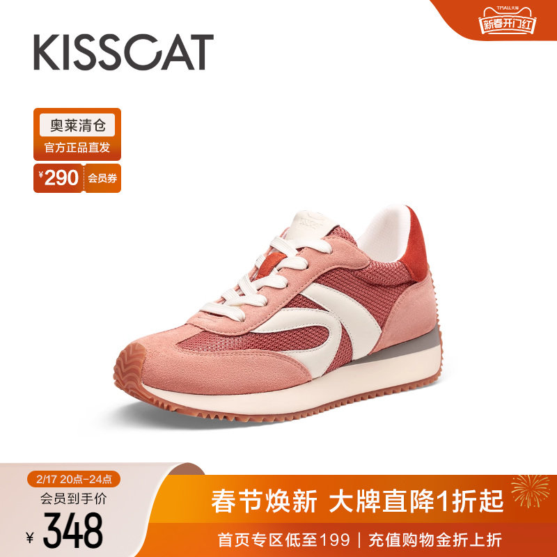 KISSCAT接吻猫休闲慢跑鞋增高羊绒拼接运动鞋柔软牛皮休闲鞋女