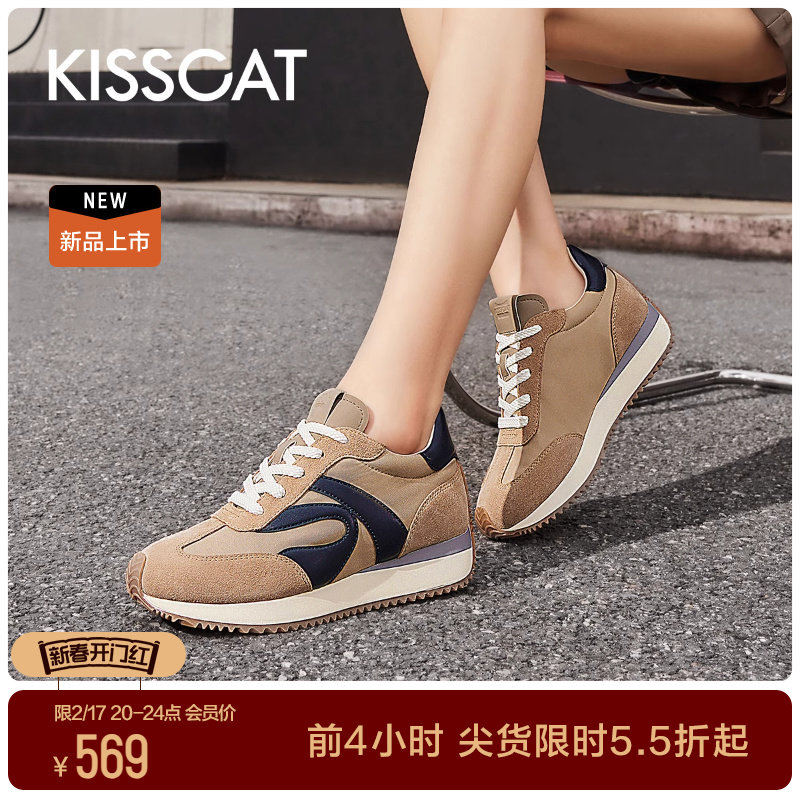 KISSCAT接吻猫2024春新可颂厚底阿甘鞋德训鞋增高美拉德运动鞋