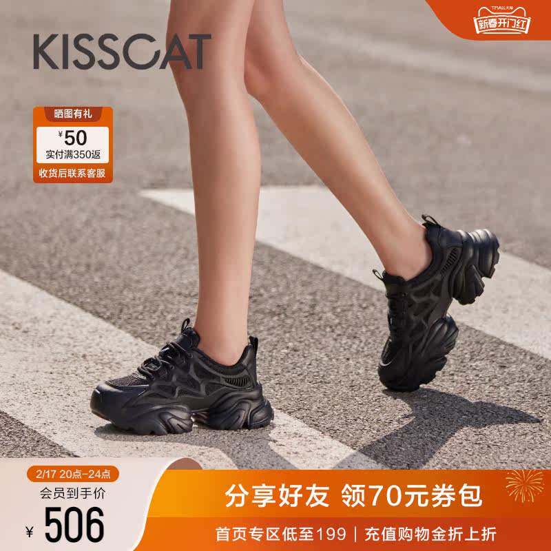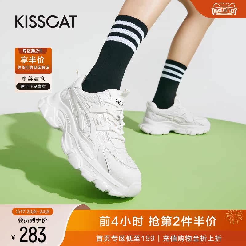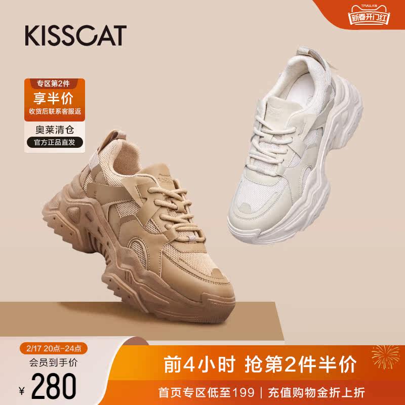 KISSCAT接吻猫2024春新品百搭老爹鞋厚底增高休闲运动鞋小白鞋女
