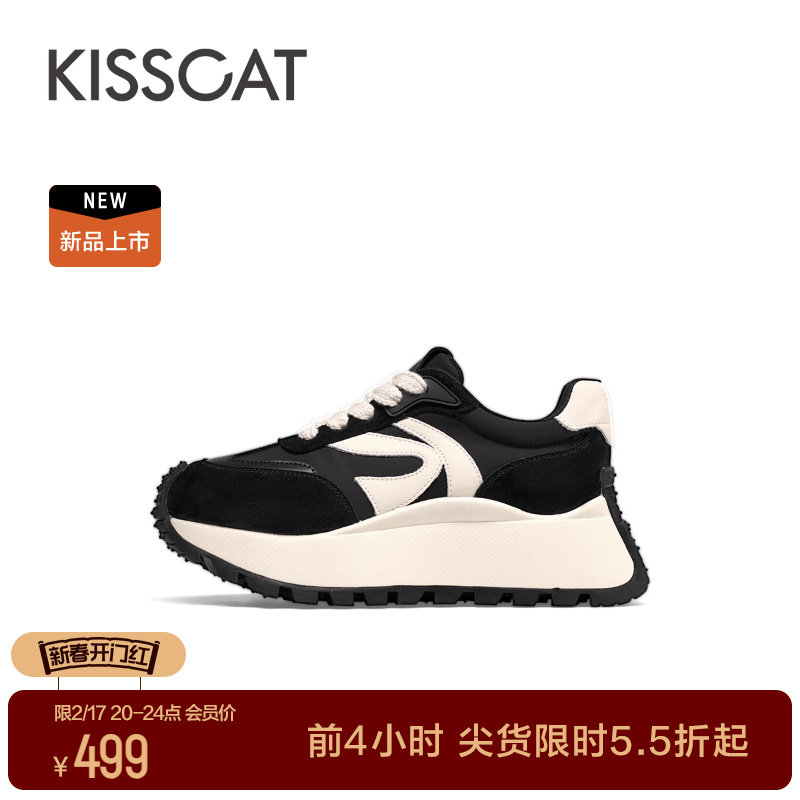 KISSCAT接吻猫2024春季新款厚底拼接休闲运动鞋增高复古老爹鞋女