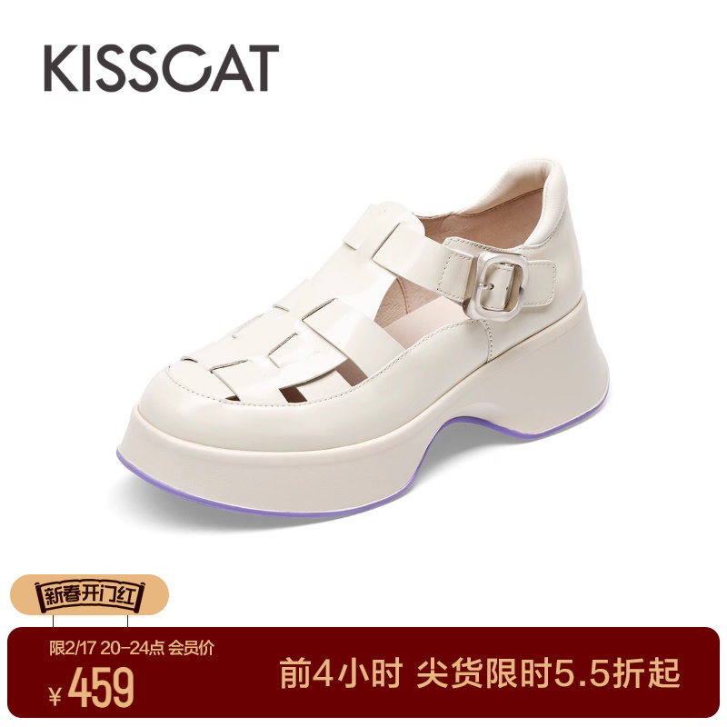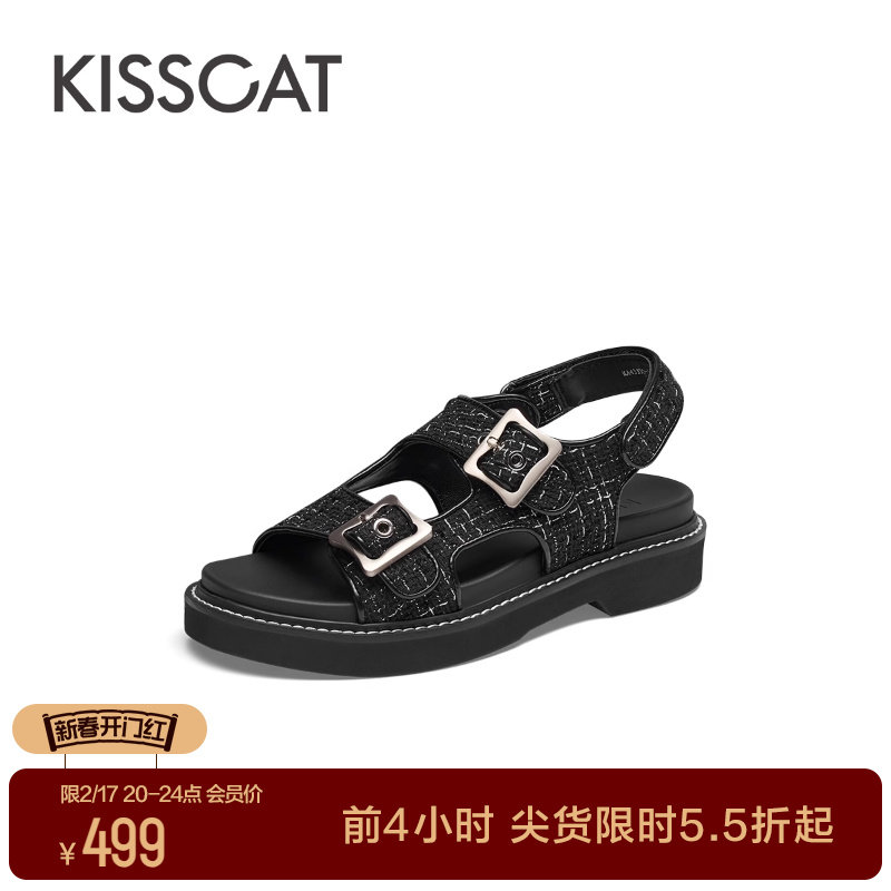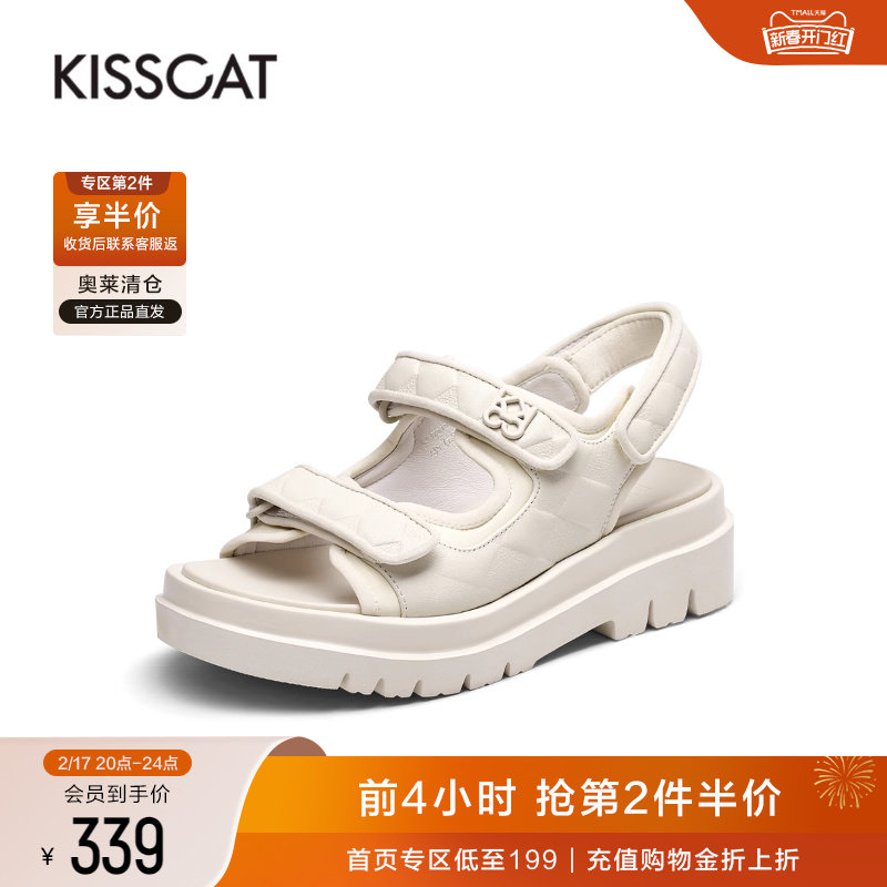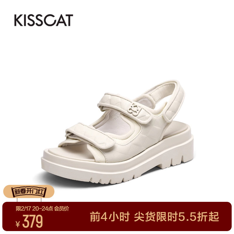 KISSCAT接吻猫春季新款时尚海边平底鞋沙滩舒适法式魔术贴凉鞋女