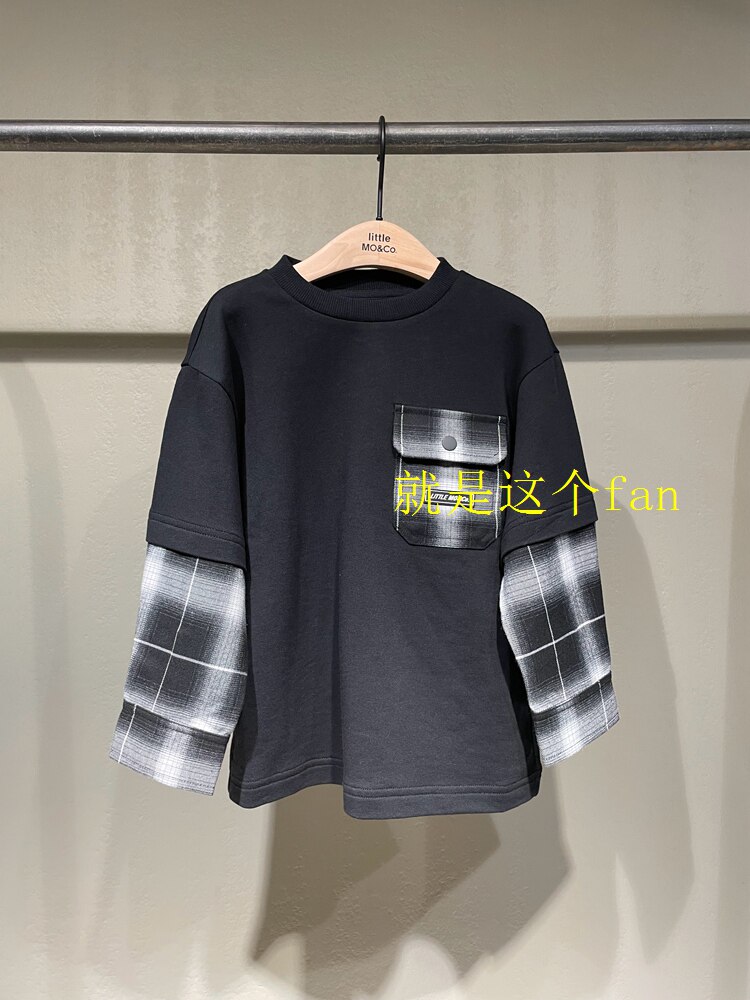 little moco摩安珂童装23秋男童格纹假两件长袖T恤卫衣KBC3TOP006