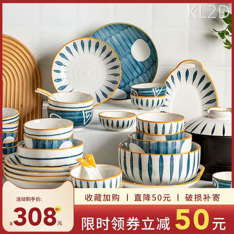 摩登主妇青印日式餐具碗碟套装家用陶瓷饭碗汤碗砂锅组合碗筷套装