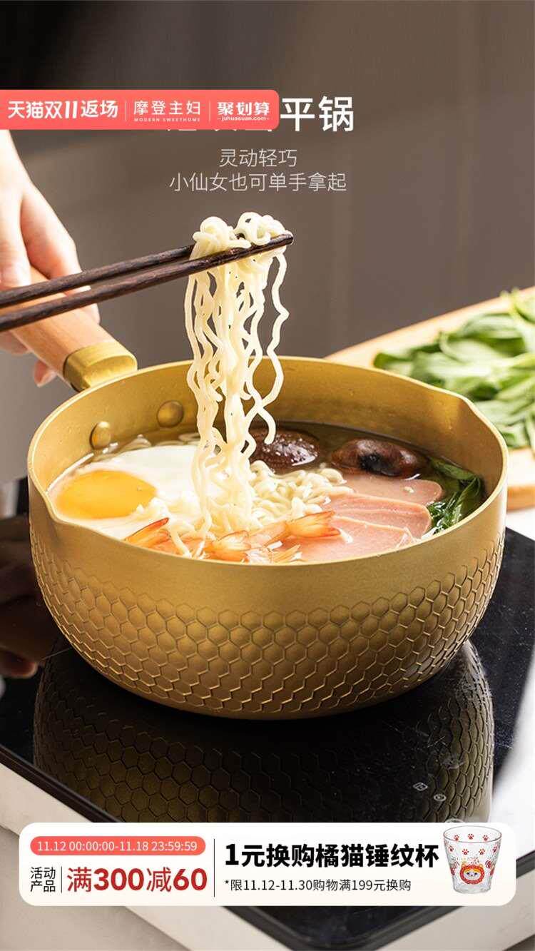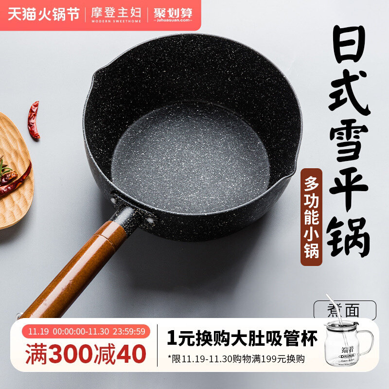 摩登主妇日式雪平锅奶锅一人食电磁炉小锅汤锅不粘锅煮面锅泡面锅