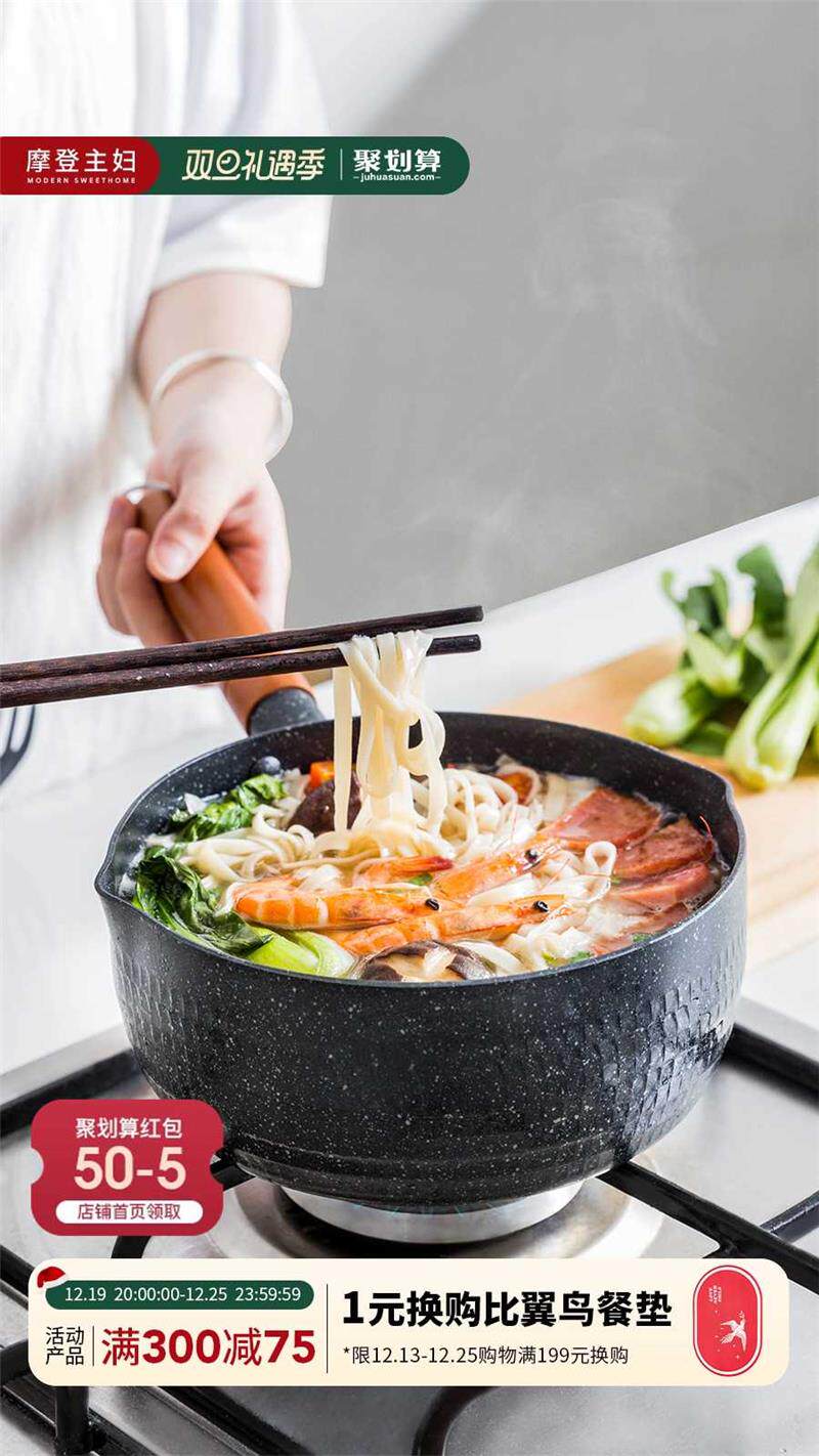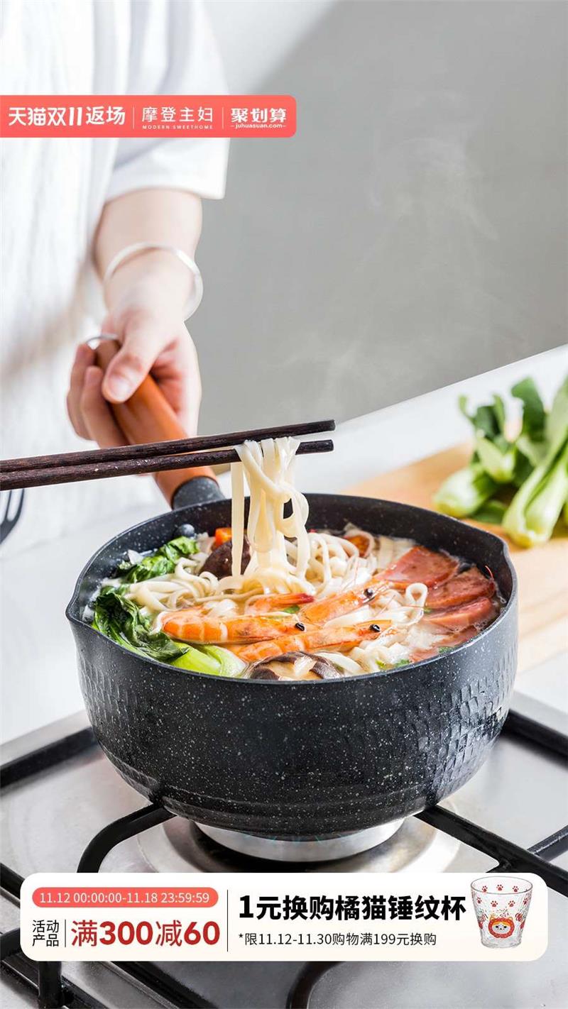摩登主妇日式雪平锅不粘锅泡面锅煮面锅辅食小锅汤锅热奶锅电磁炉