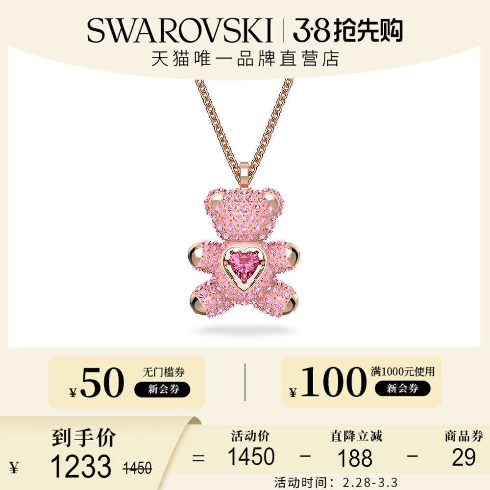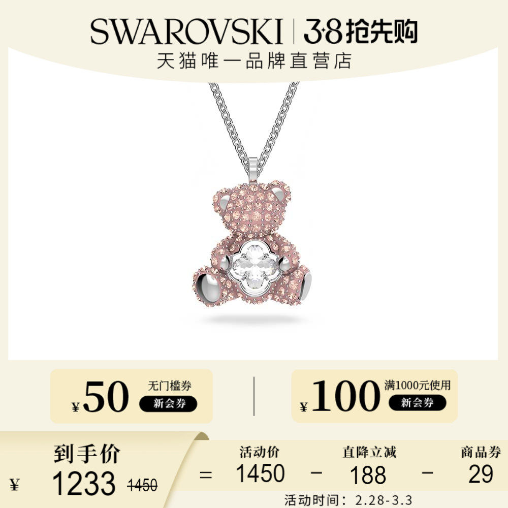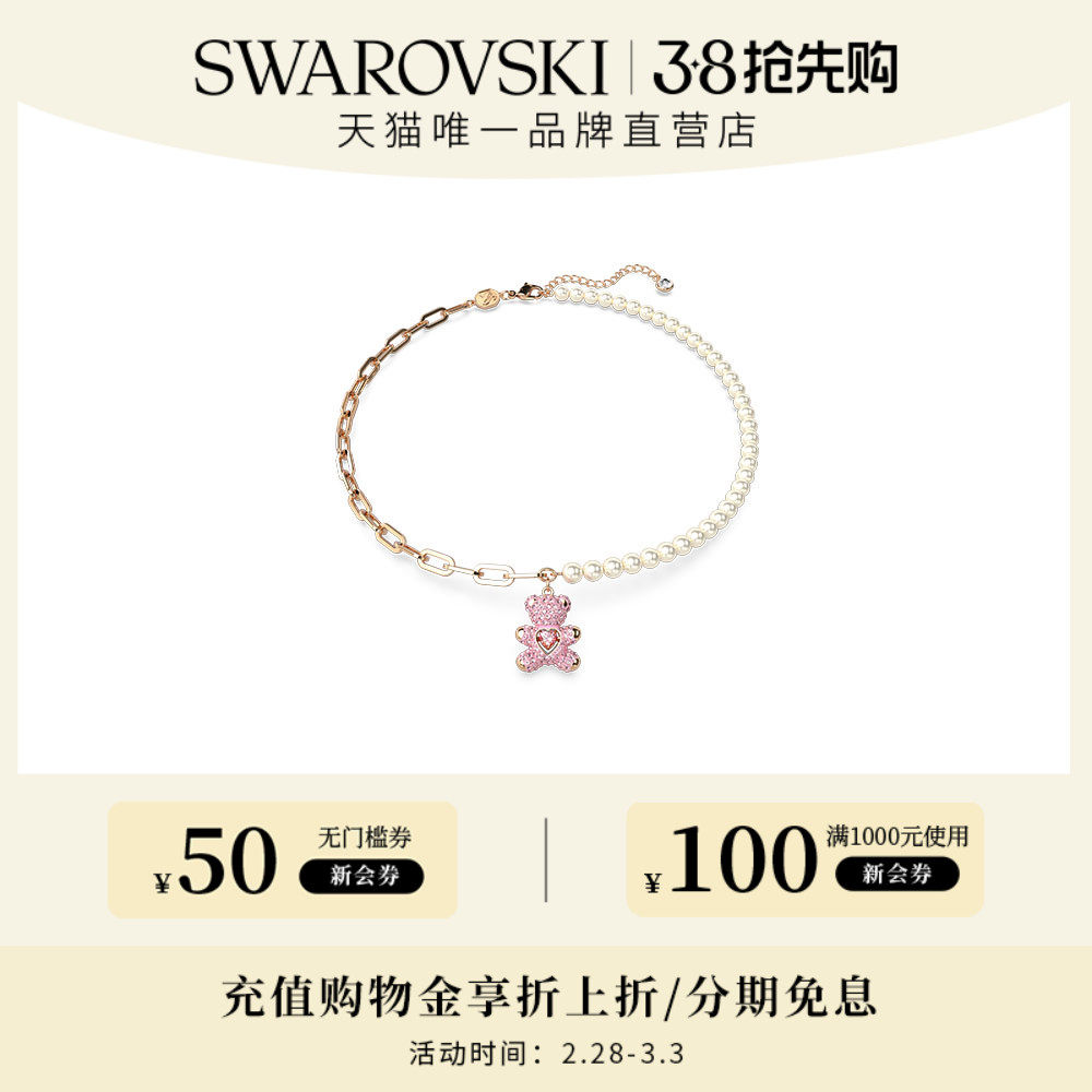 Swarovski/施华洛世奇官网正品粉色泰迪小熊女士项链吊坠5642976