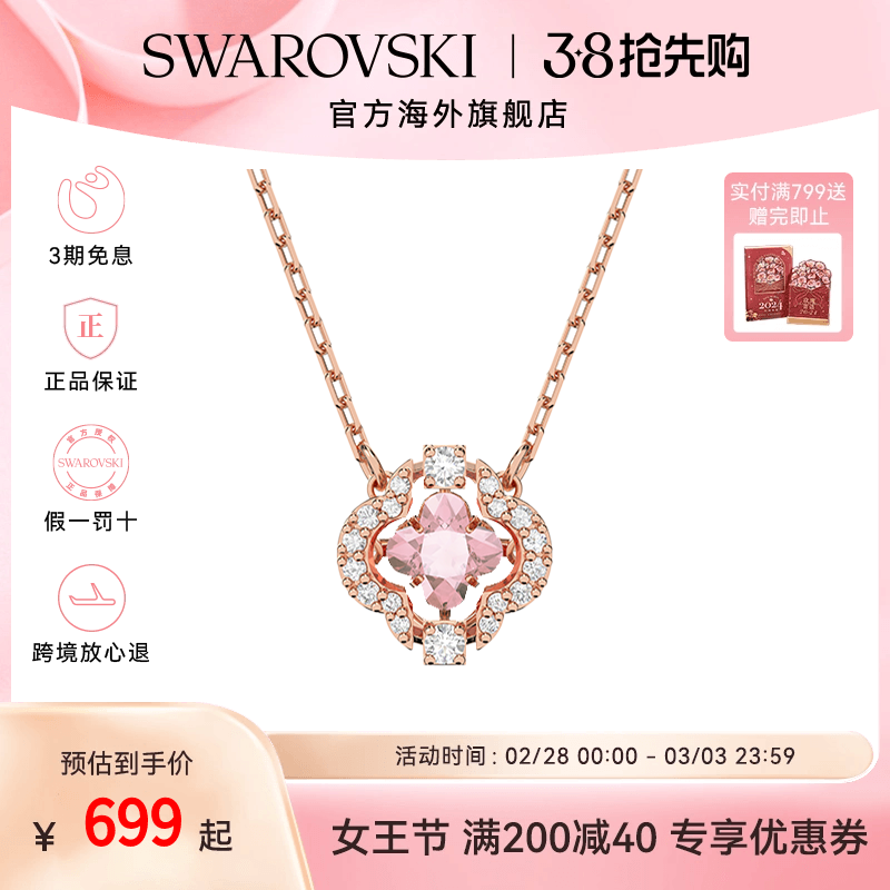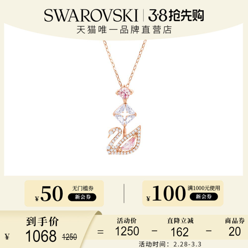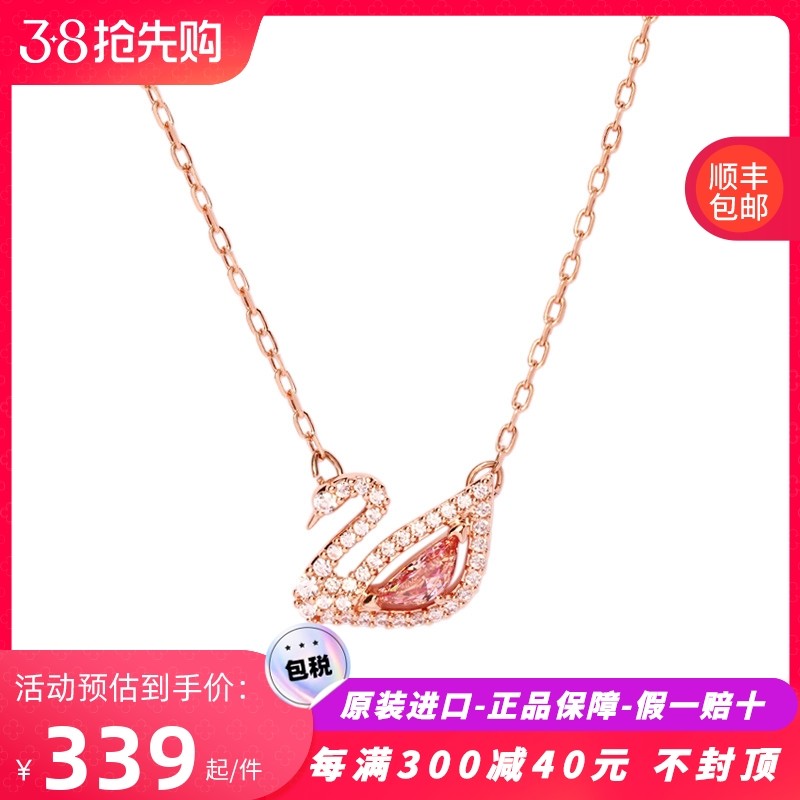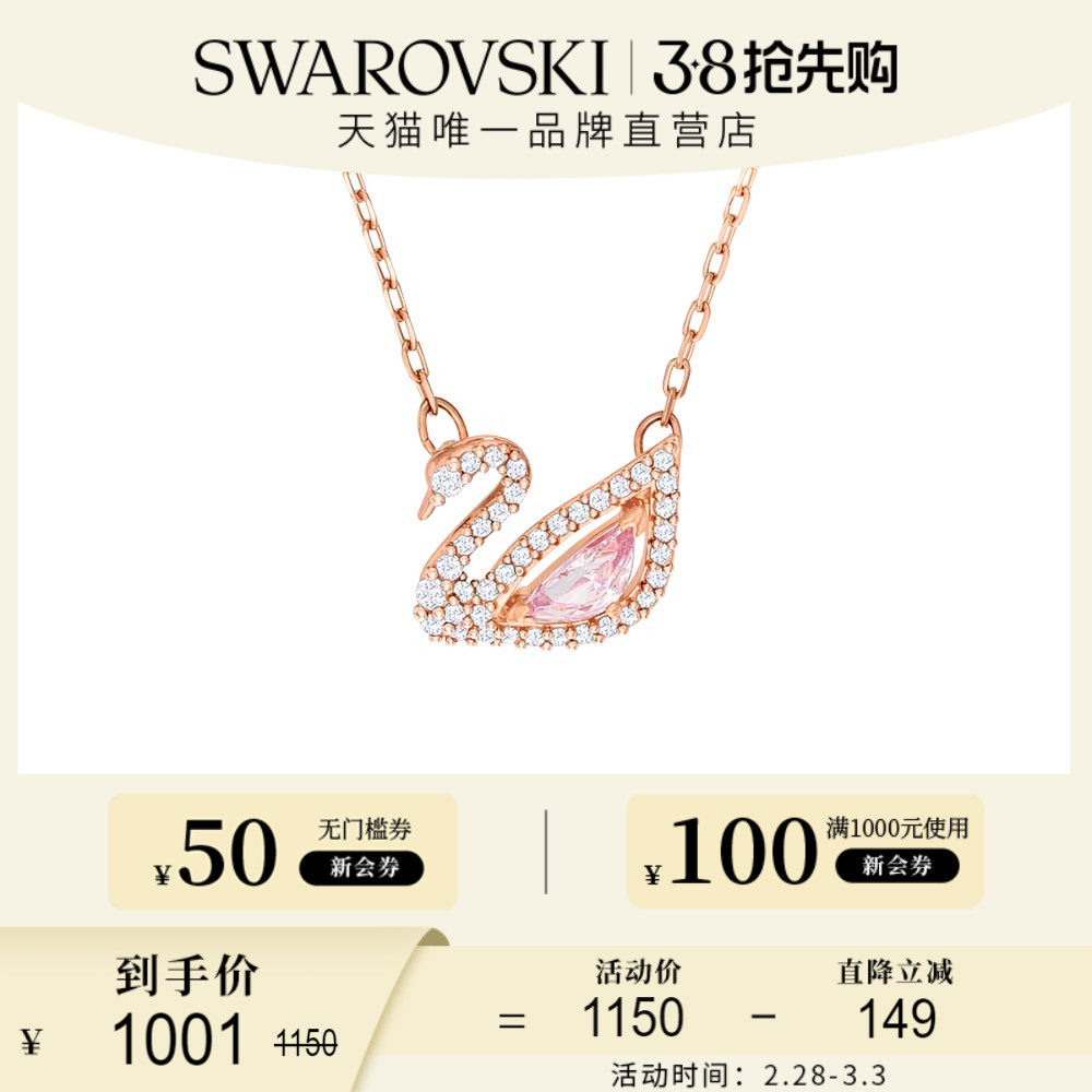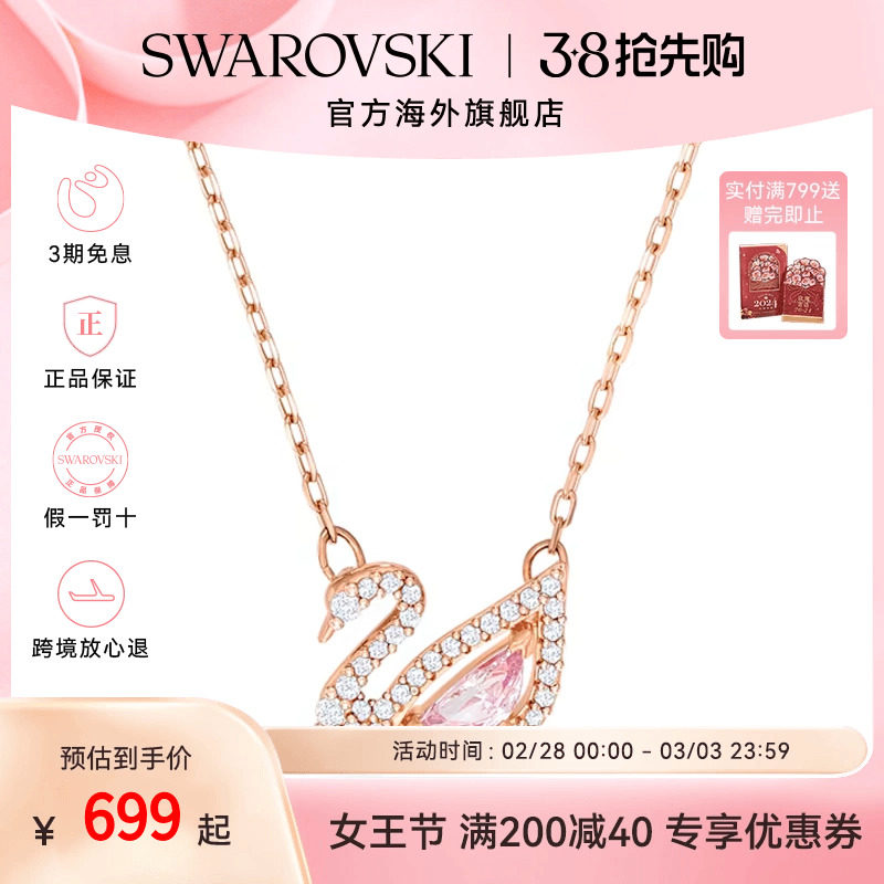 Swarovski/施华洛世奇新款粉钻天鹅女水晶锁骨粉色项链三八节礼物