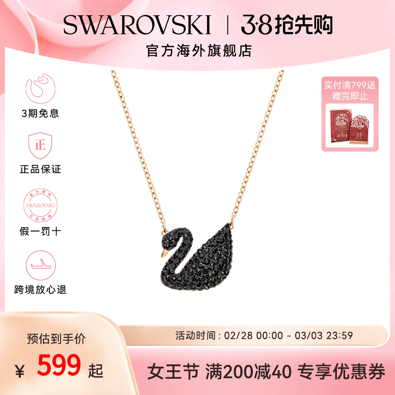 【38抢先购】施华洛世奇ICONIC SWAN(大)黑色天鹅锁骨