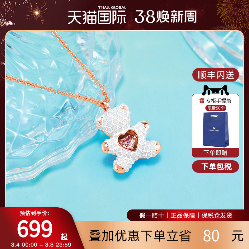 施华洛世奇TEDDY泰迪熊白色小熊女项链水晶首饰女友生日礼物