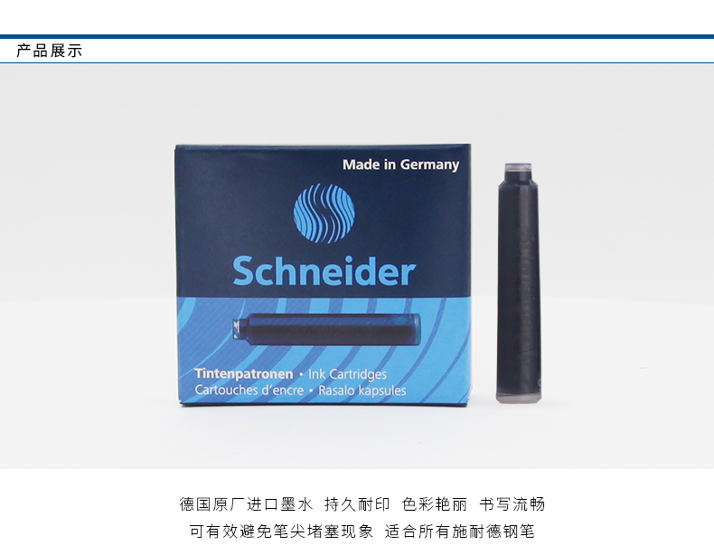德国进口施耐德钢笔墨囊墨水胆墨囊欧标通用墨囊男孩女孩学生用蓝