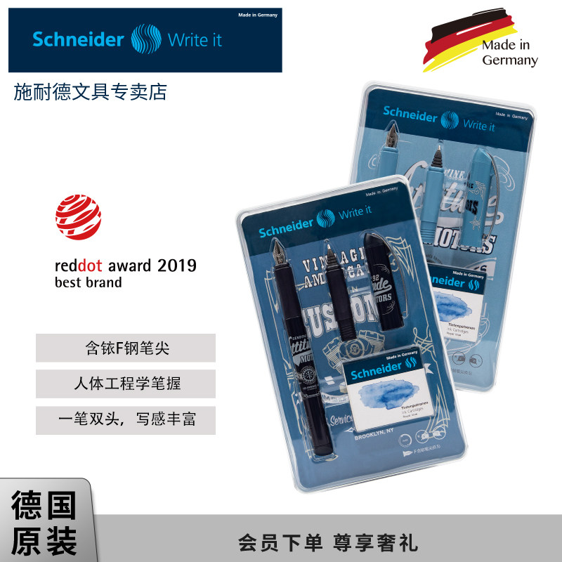 德国Schneider施耐德钢笔登山骑行钢笔签字笔礼盒双笔头学生钢笔