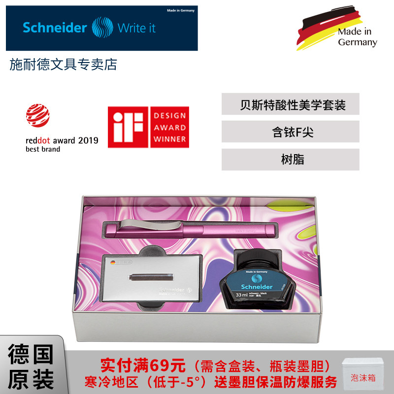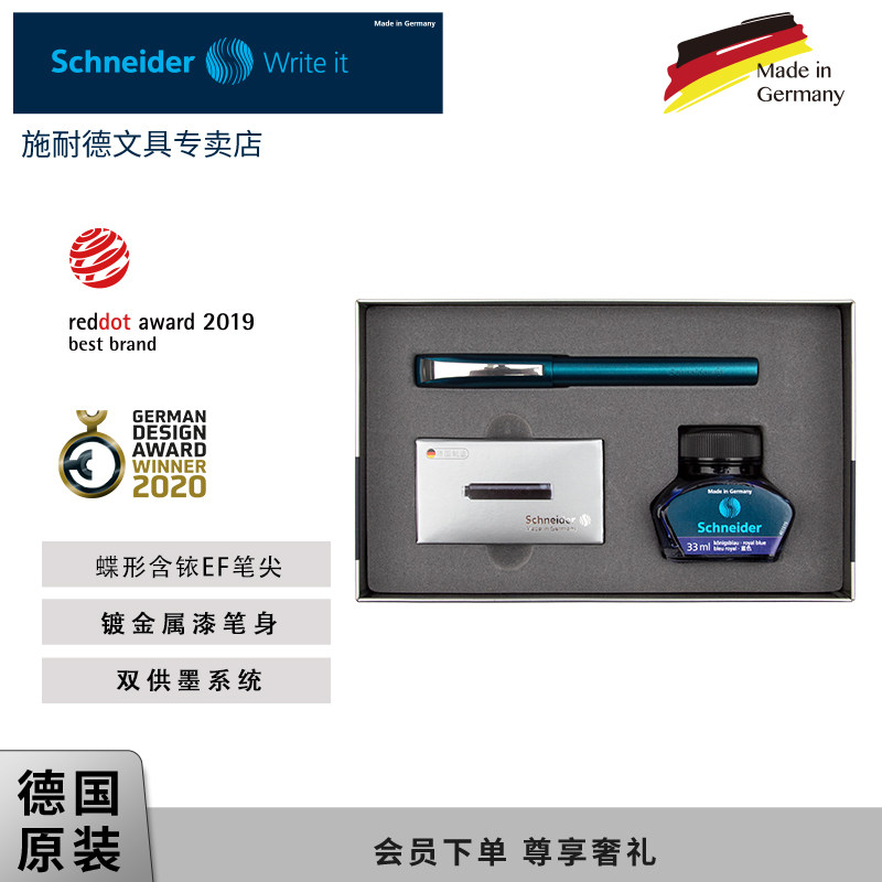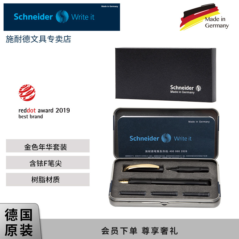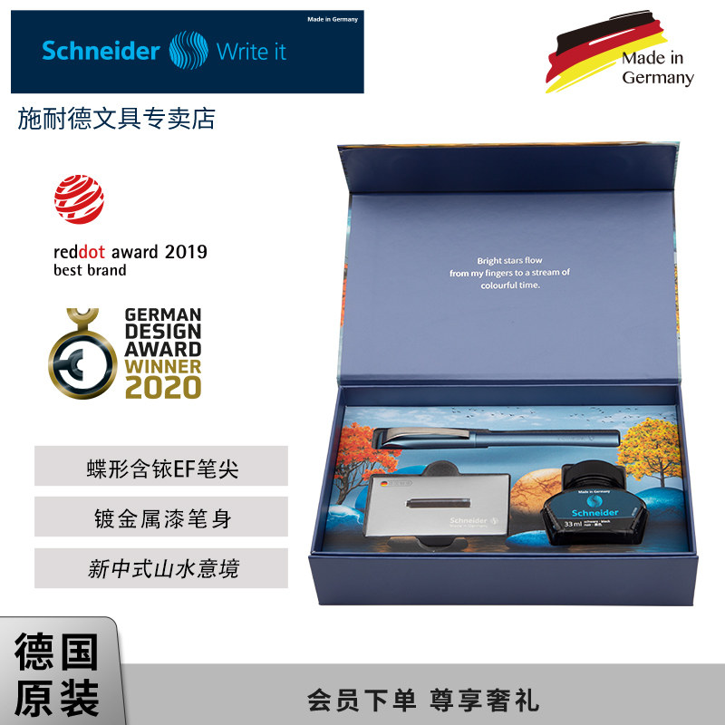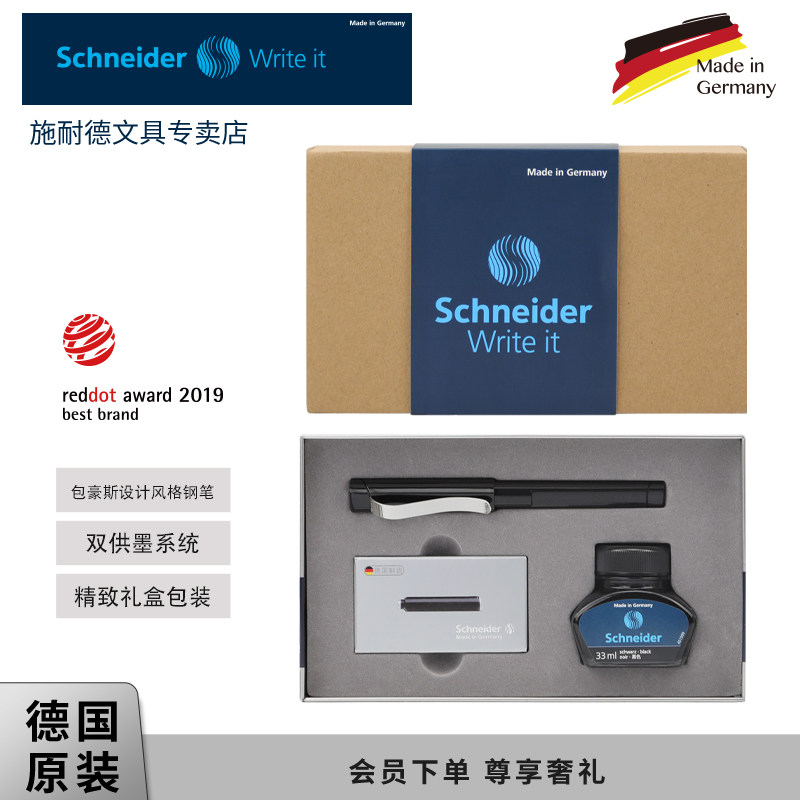施耐德钢笔墨水礼盒套装德国进口经典高颜值男士女士商务办公高端精致送礼物硬笔签字练字专用F尖企业定制品