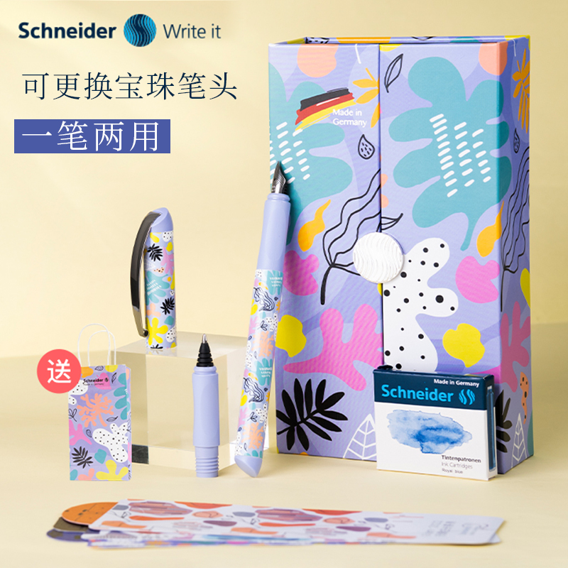 德国施耐德钢笔美丽系列双笔头小学生三年级专用练字书写钢笔礼盒