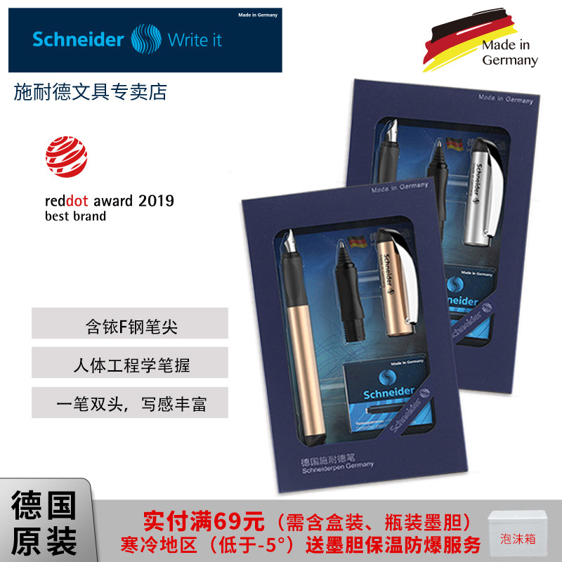 施耐德钢笔德国进口Schneider金珍珠办公商务学生专用男女士练字双笔头高档精致礼盒套装F尖送礼物墨囊可替换
