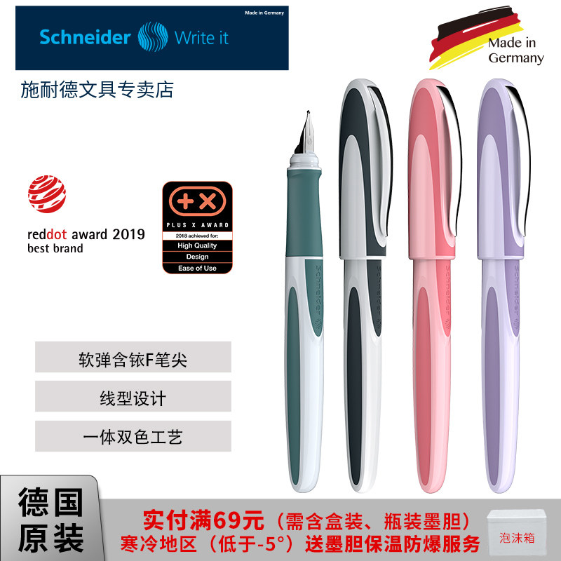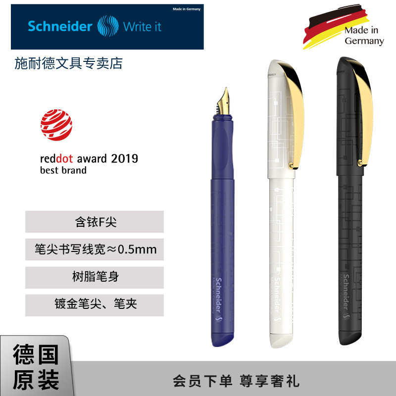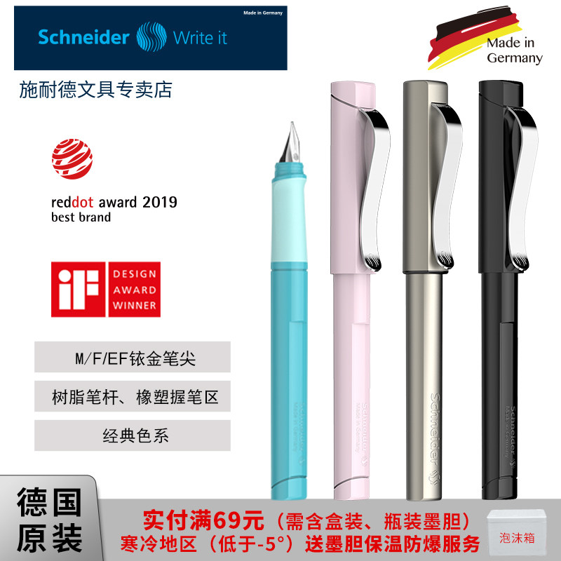 施耐德钢笔德国进口Schneider初高中男生练字F尖硬笔滑雪送礼盒套装学生专用男士女士高档精致礼物墨囊可替换