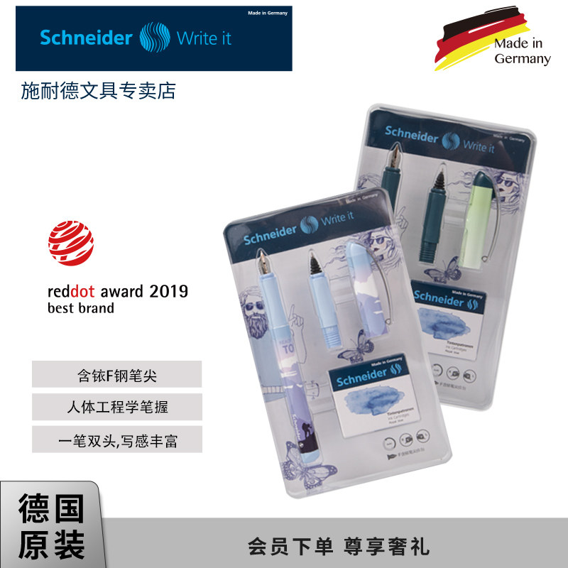 施耐德钢笔德国进口RAY锐男女士练字学生专用高档双笔头可替换墨囊精致送礼物礼盒套装小学生三年级新年礼品