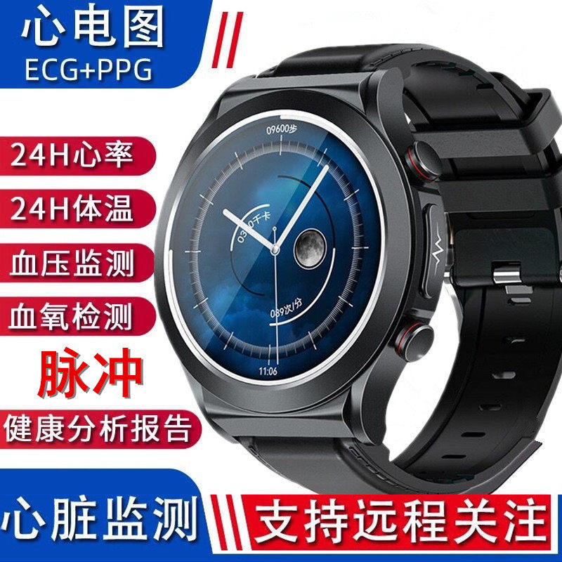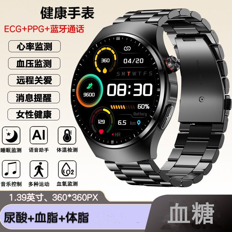 脉冲血糖血压多功能智能蓝牙心率血氧血脂体温计步健康心电图手表