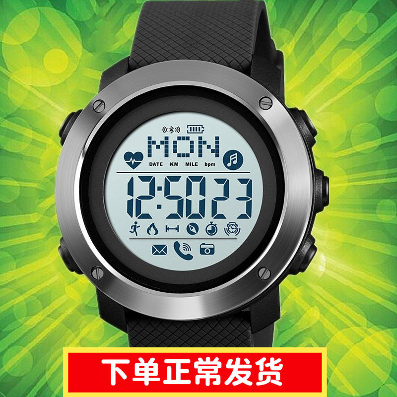 时刻美多功能跑步男表智能蓝牙手表运动LED电子表男士大表盘时尚