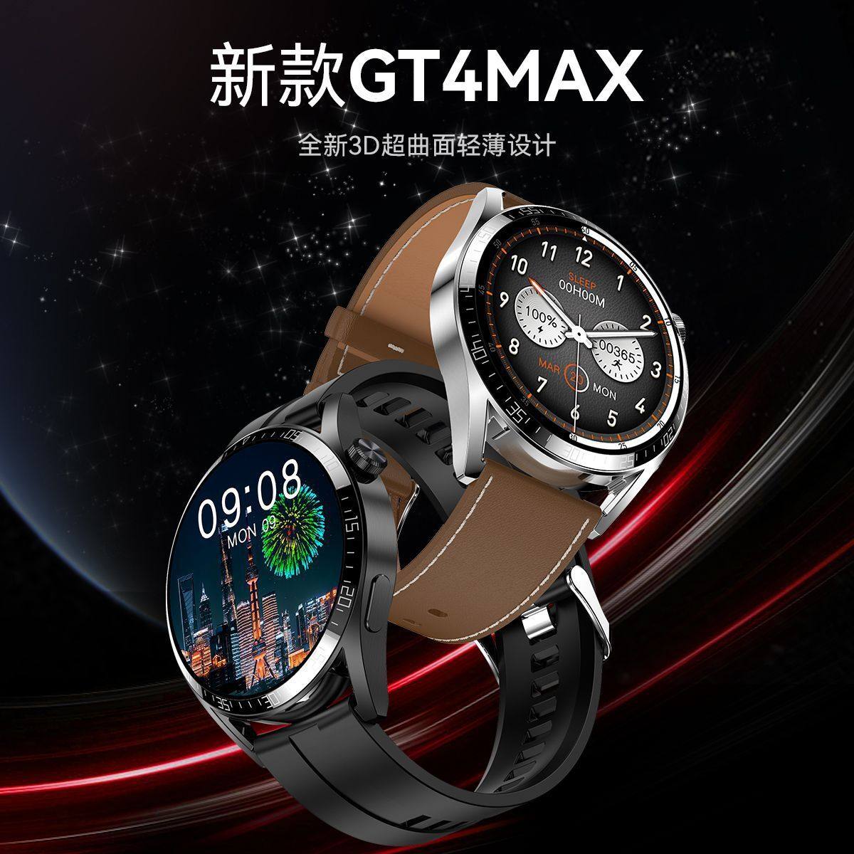 华强北GT4max智能蓝牙通话NFC多功能运动心率支付视频神器男手表