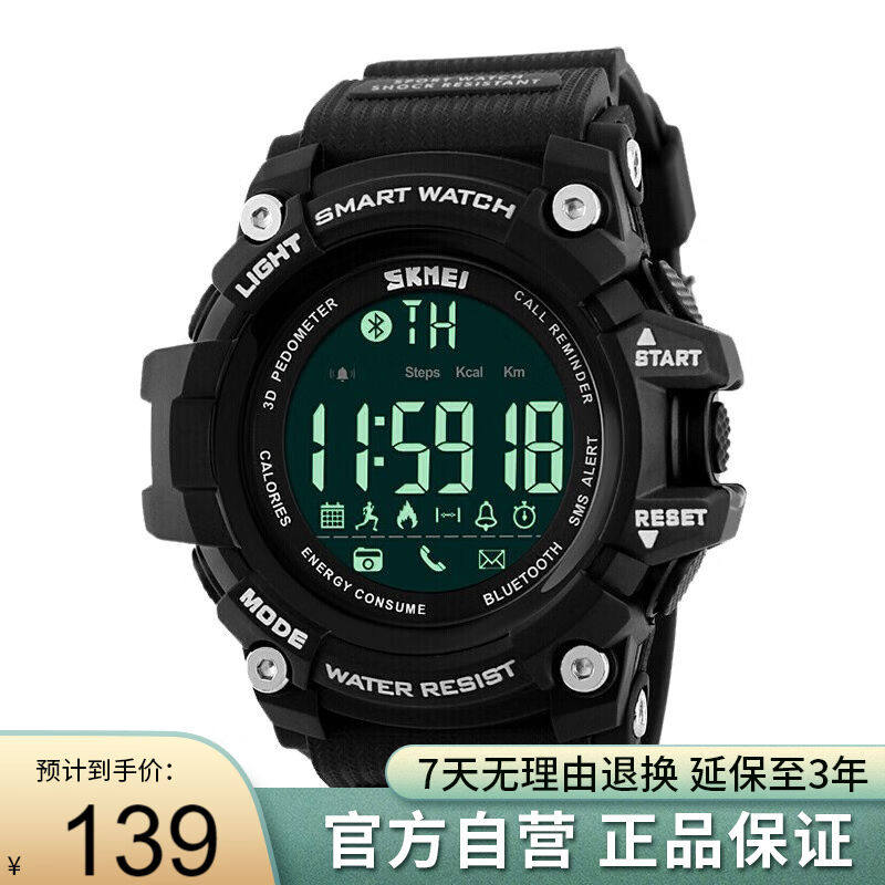 时刻美skmei智能手表男士运动表多功能学生跑步蓝牙电子表1227黑