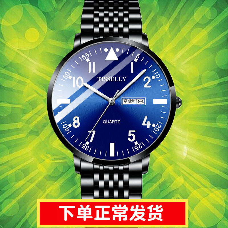 正品新款简约超薄手表时尚潮流防水男钢带石英表皮带网红夜光腕表