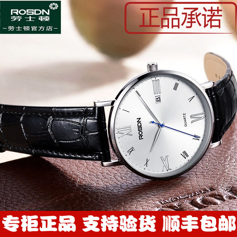 劳士顿2022新款正品轻薄简约真皮带男表时尚潮流防水手表石英腕表